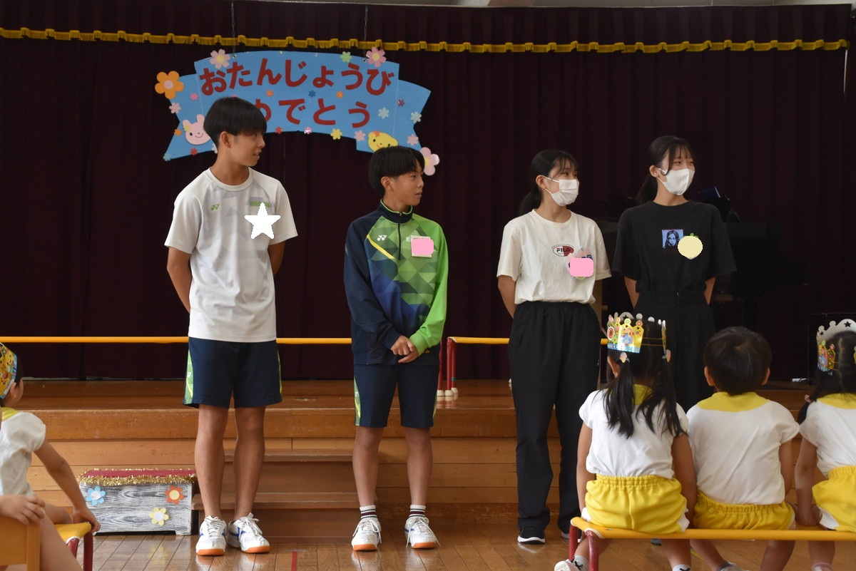 9月9日~9月11日の3日間、職場体験でみえた橋南中学校2年生の2人の学生さん、9月1日~9月19日の3週間、幼稚園実習でみえた高田短期大学2年生の1名の学生さん、9月17日~9月19日の3日間、職場体験でみえた南が丘中学校2年生の2名の学生さん、9月1日~9月30日の4週間、幼稚園実習でみえた皇學館大學3年生の1名の学生さん。
