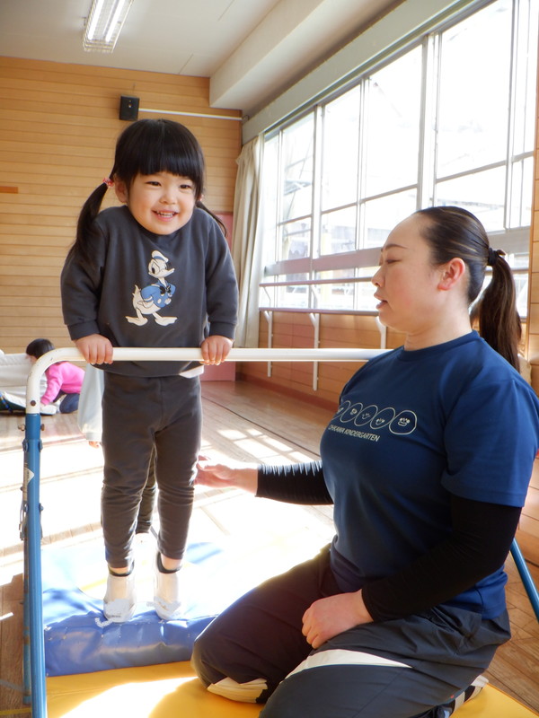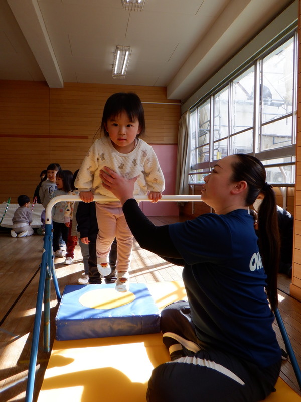 体操では鉄棒の飛び乗りから前回りにチャレンジしていますが、怖がらずに回ることができていますよ。