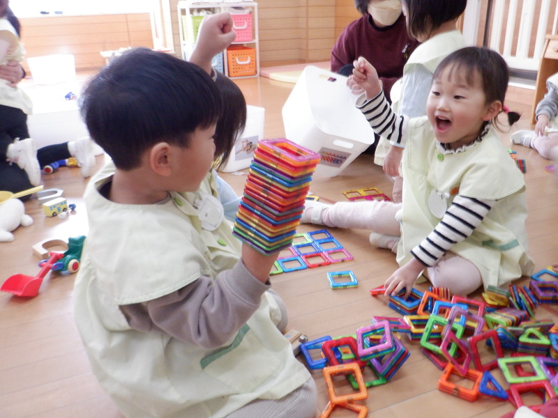 毎日のように戸外遊びも楽しんでいます。また、室内遊びでは友だちと工夫しながら遊んだり、イメージしたものを作ったりすることも楽しめるようになりました。