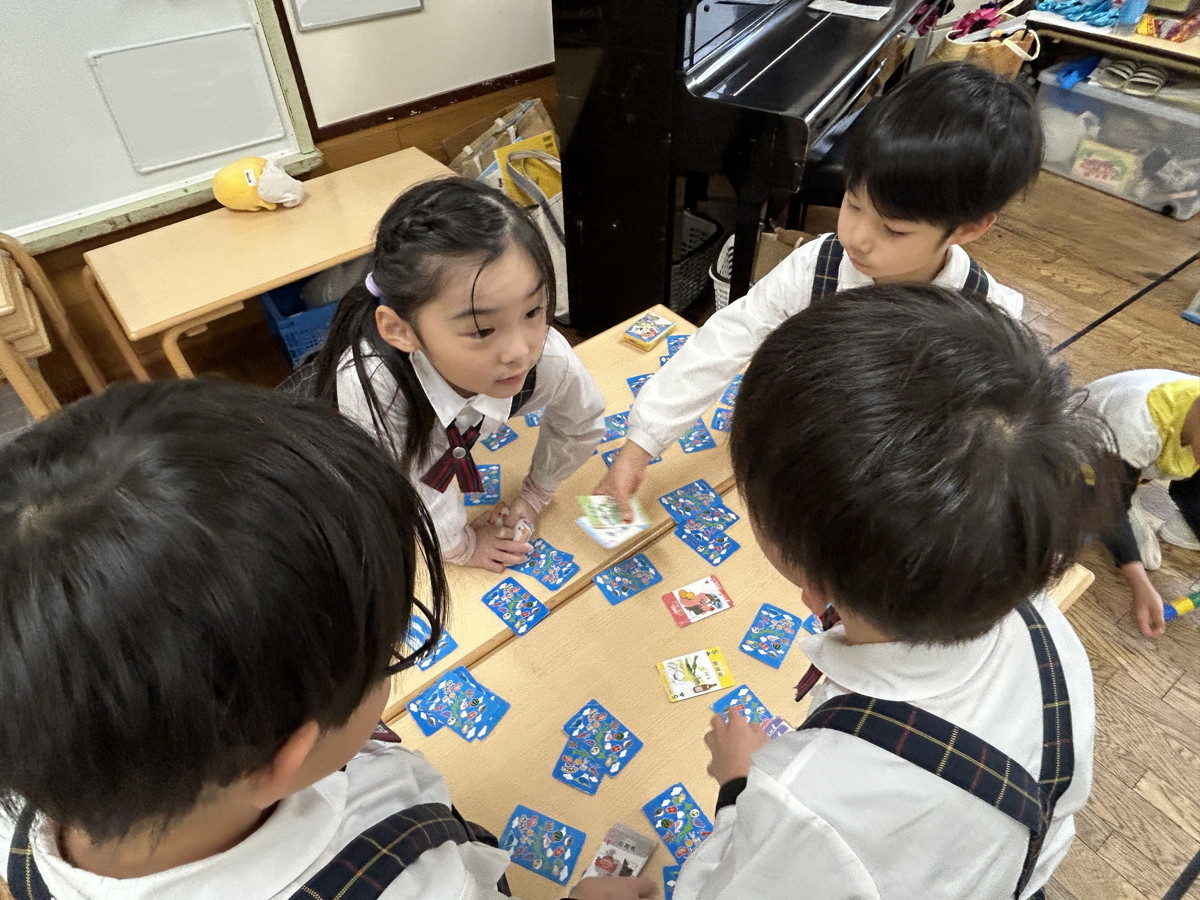 そして、自由遊びもパワーアップしています。カプラ(木製の積み木)を使って迷路やお家を作ったり、トランプで神経衰弱(どれだけ頑張っても、子どもたちには勝てません…)をしたり、とても楽しそうにお友だちと遊びを広げていますよ。