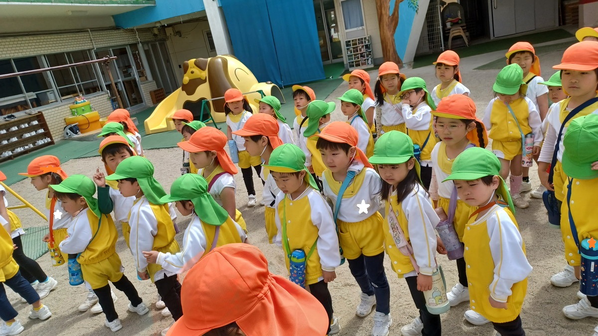 今日は、年中児・年長児が偕楽公園に園外保育に出かけました。明日は天気が怪しく雨が降るという予報が出ているので、急遽年中児も一緒に出掛けました。