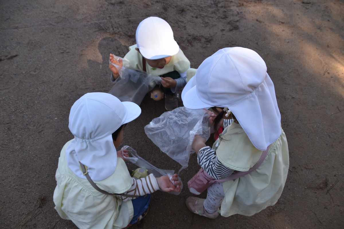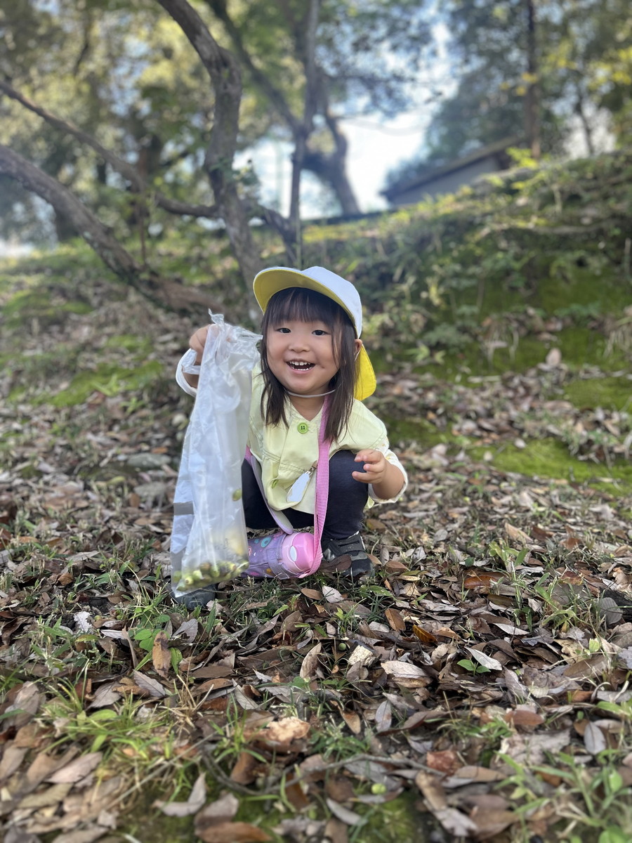 お迎えにきてもらったお家の方に、嬉しそうに収穫したどんぐりや落ち葉を見せていて、こちらも嬉しくなりました。