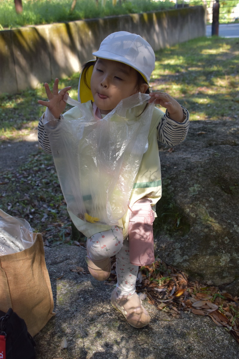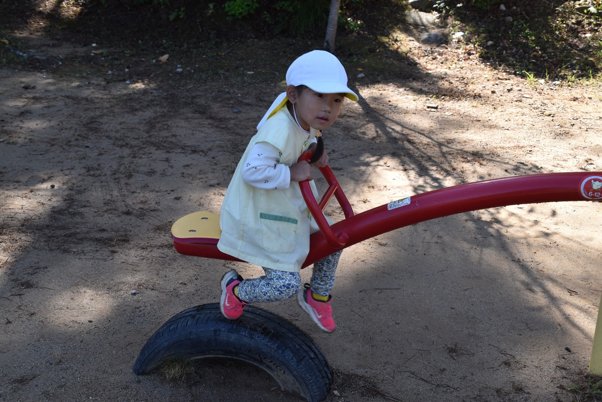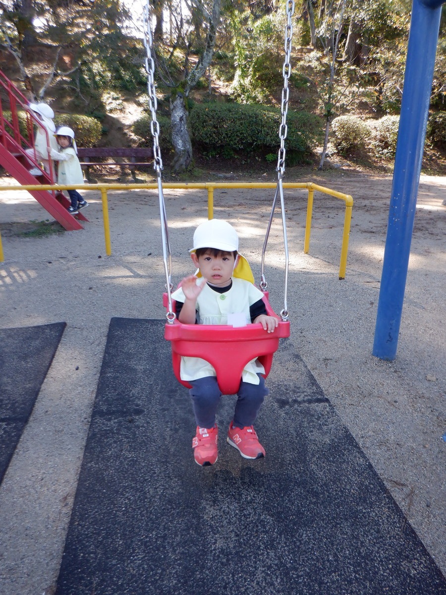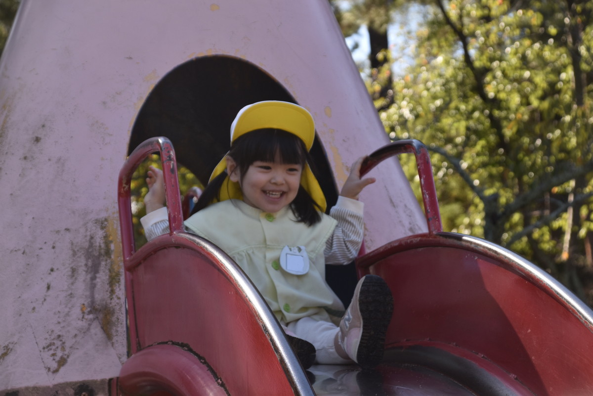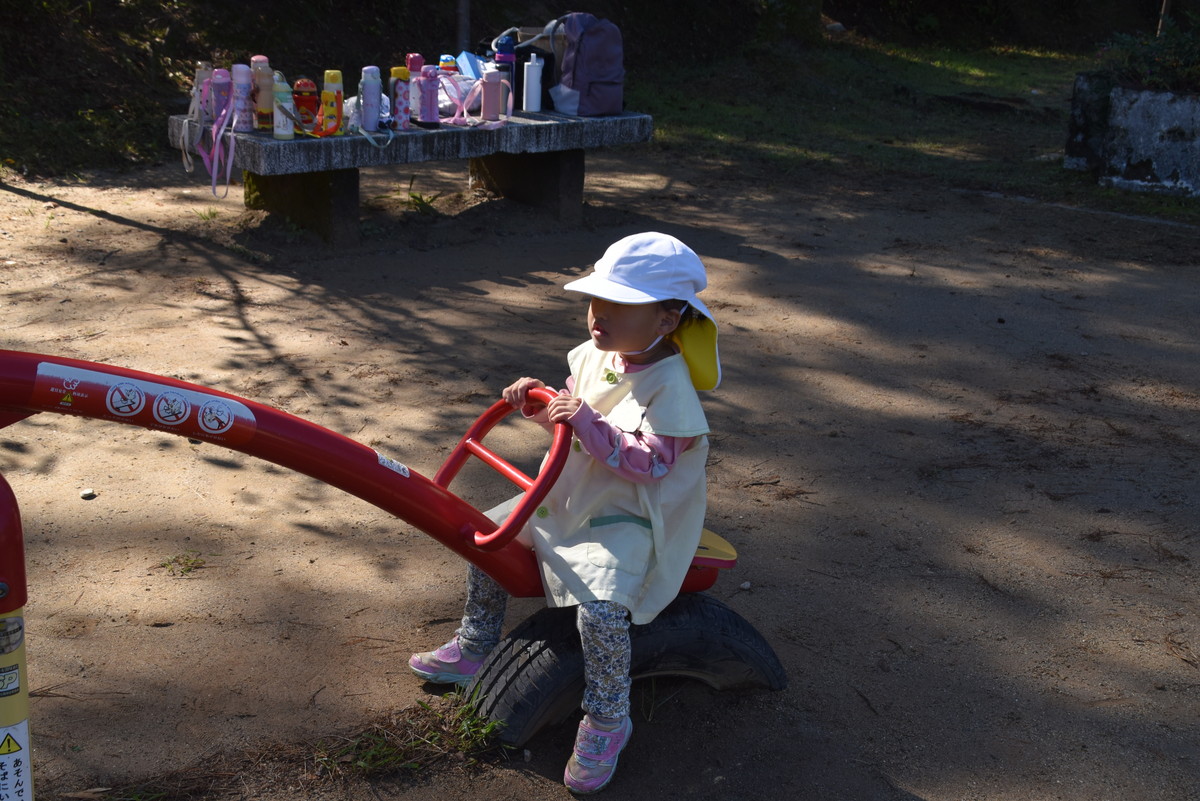 過ごしやすいお天気の中、機関車を見たり、遊具で遊んだり、どんぐりや落ち葉を収穫したりしました。