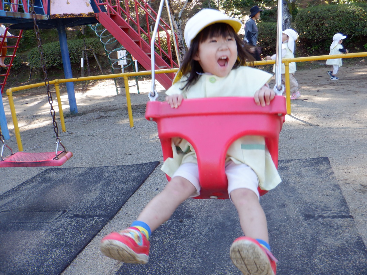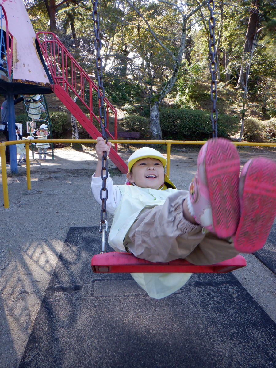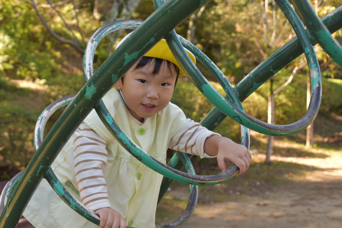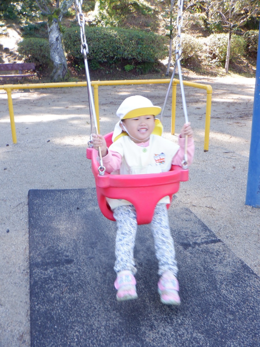 過ごしやすいお天気の中、機関車を見たり、遊具で遊んだり、どんぐりや落ち葉を収穫したりしました。