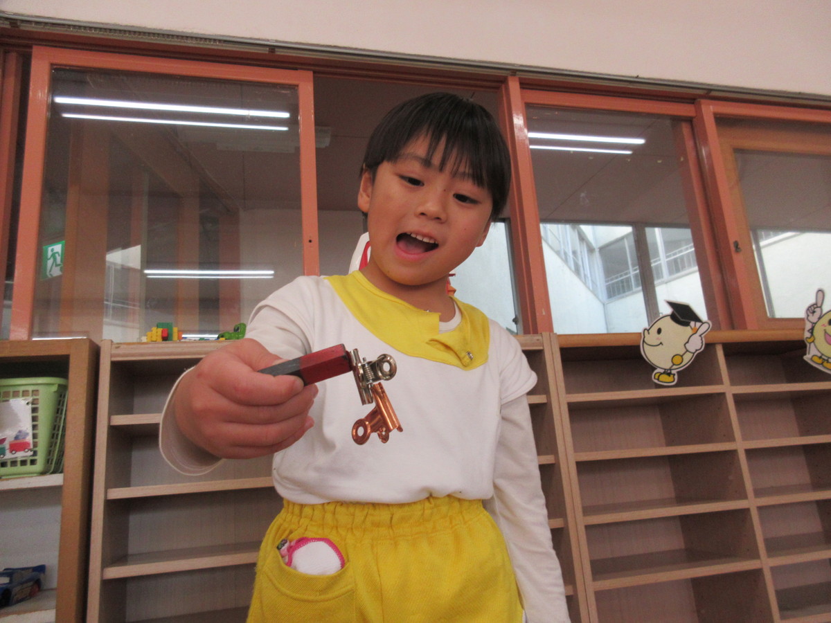 くっつくものを見つけると 「やった~!」「見て!見て!」と嬉しそうに掲げて見せてくれましたよ。