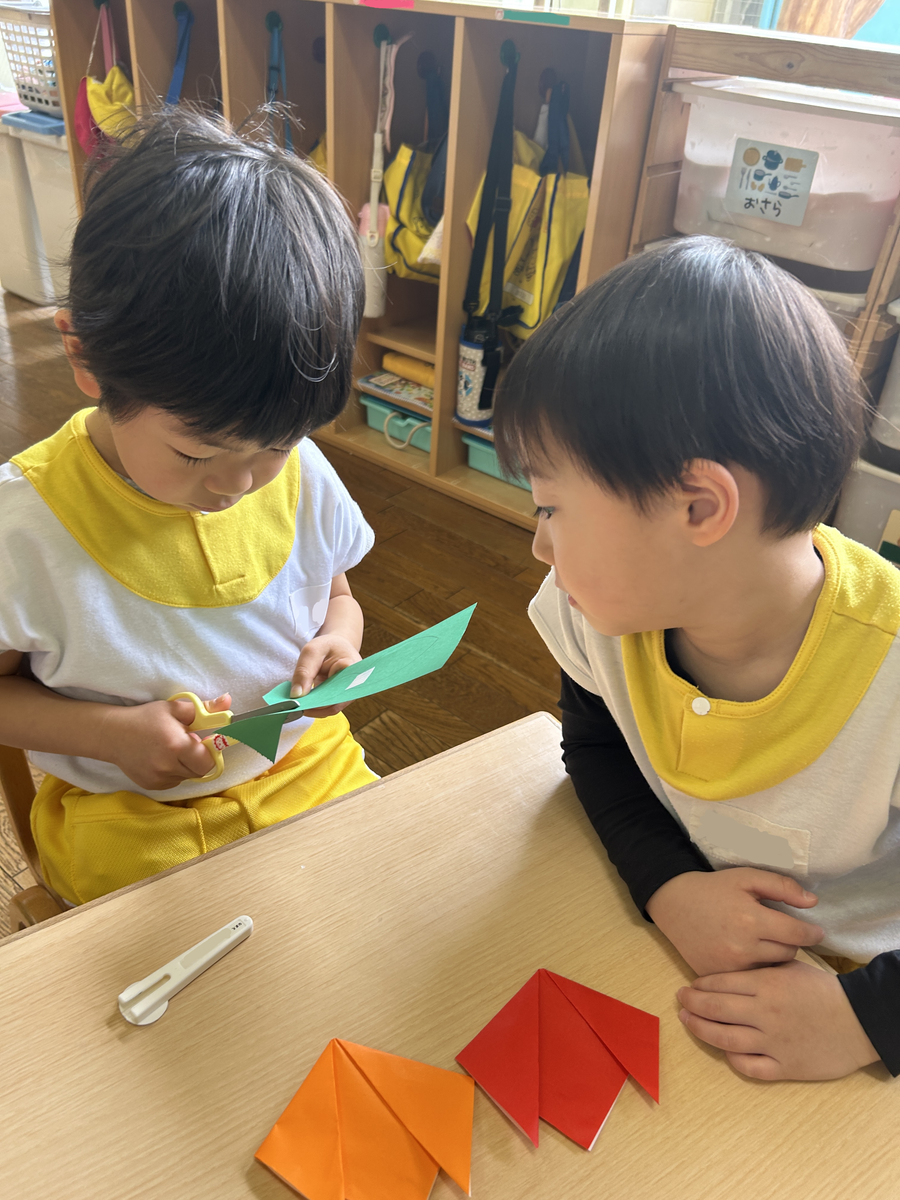 そして先日は、ペアさんと一緒に、年長さんへのプレゼントを作りました。