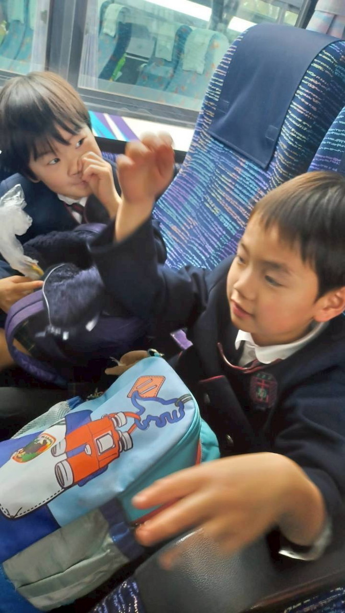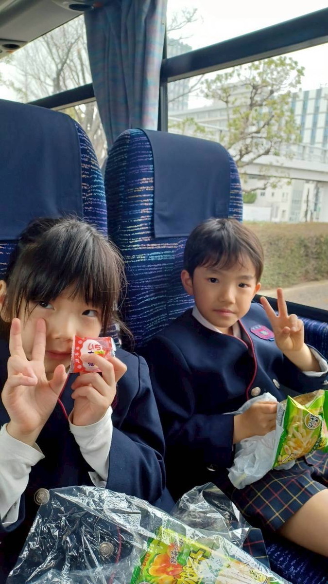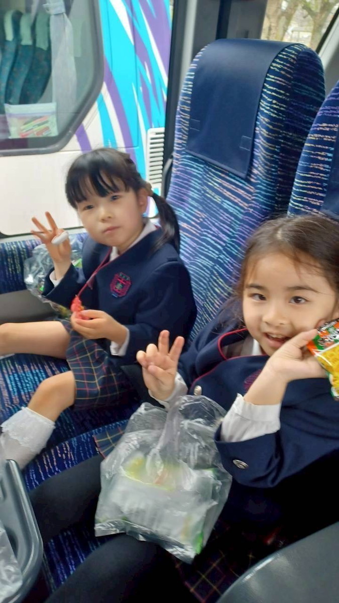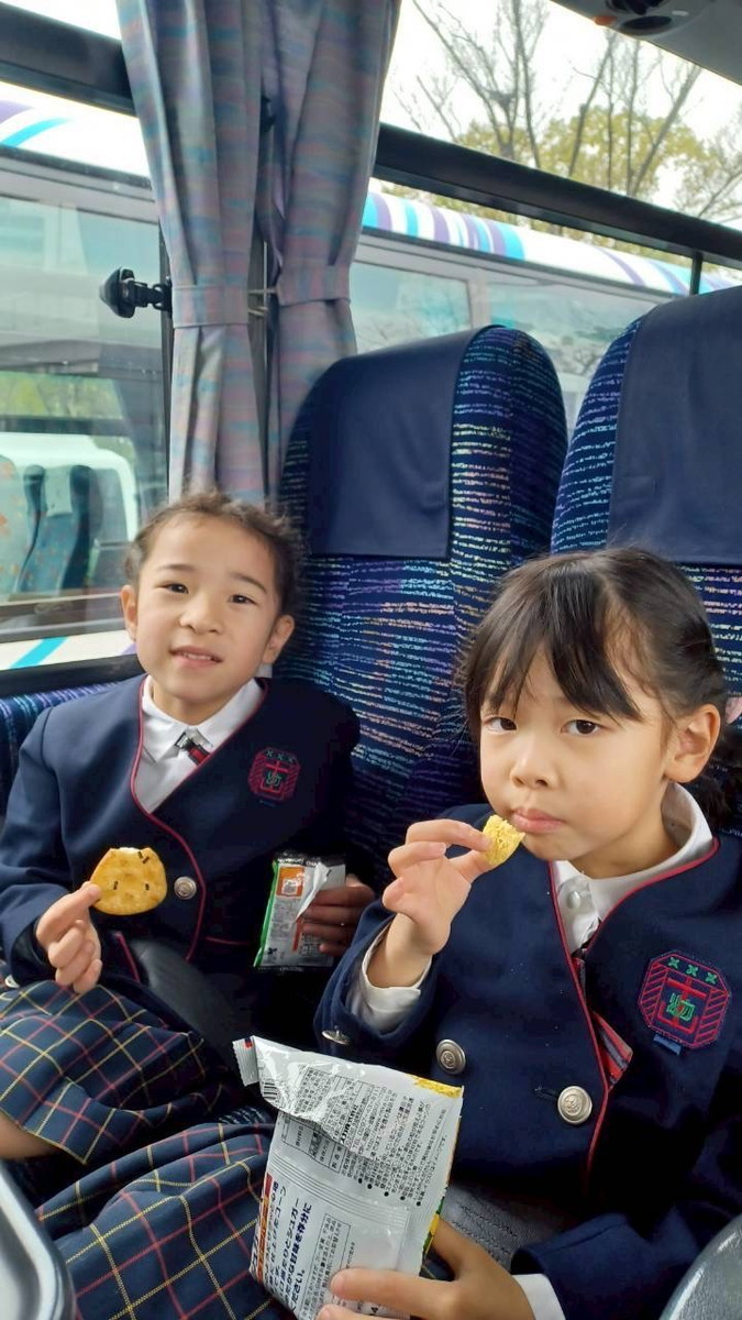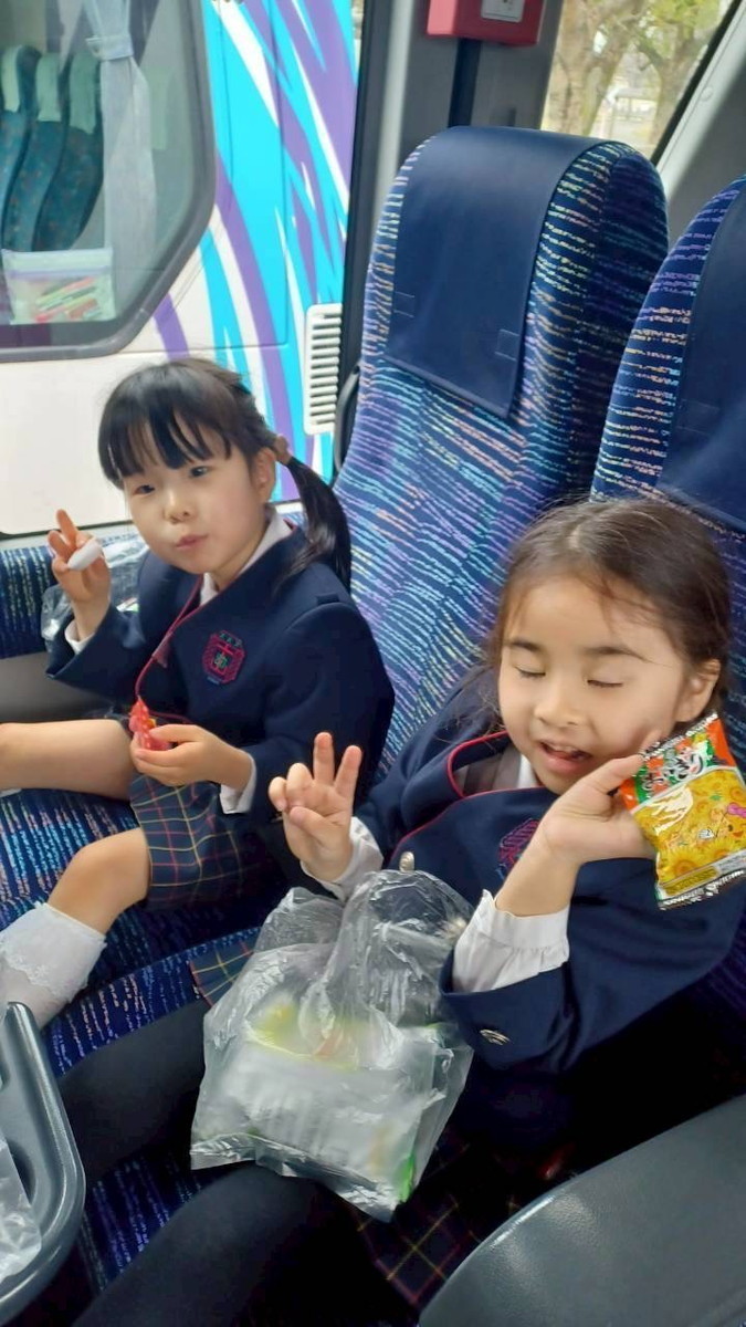 バスでのおやつタイムの様子です。