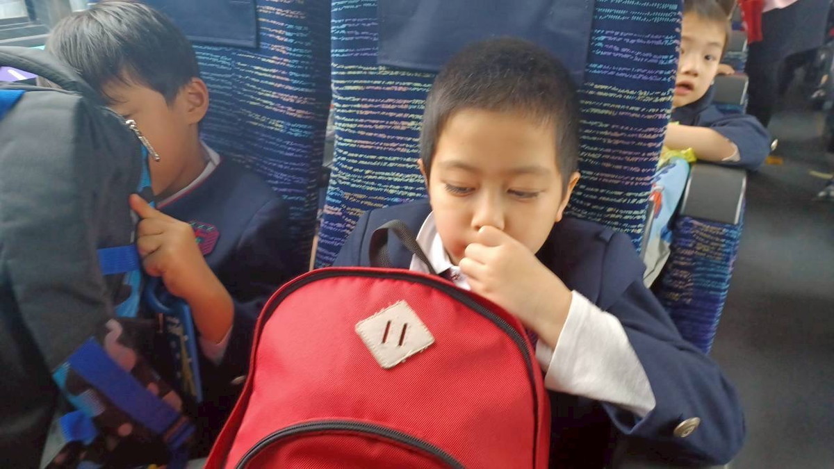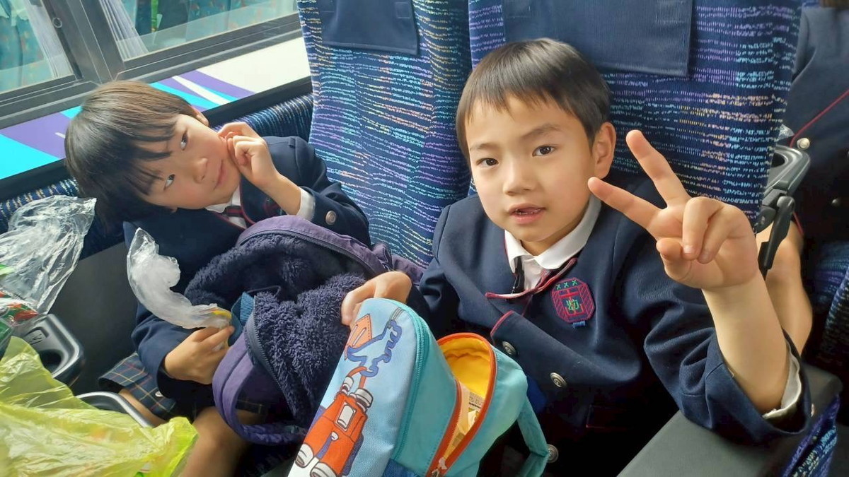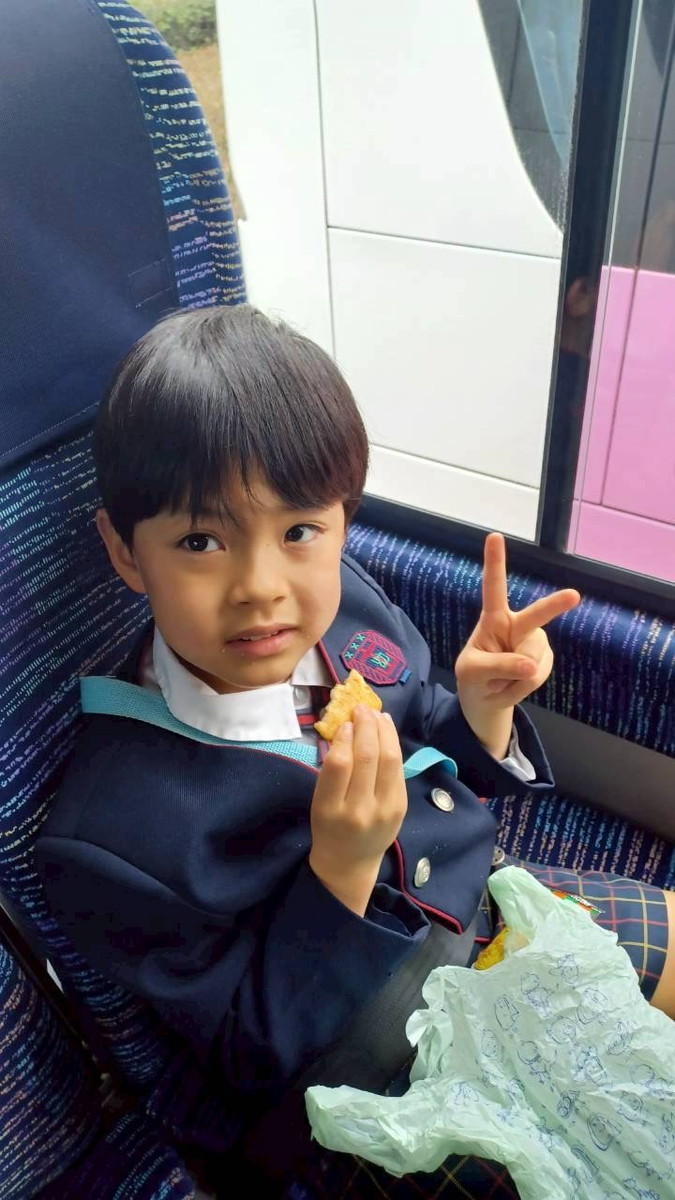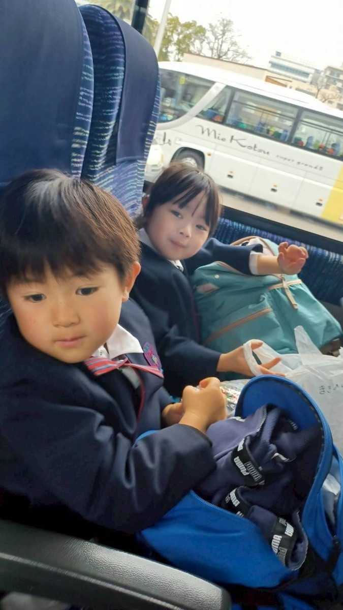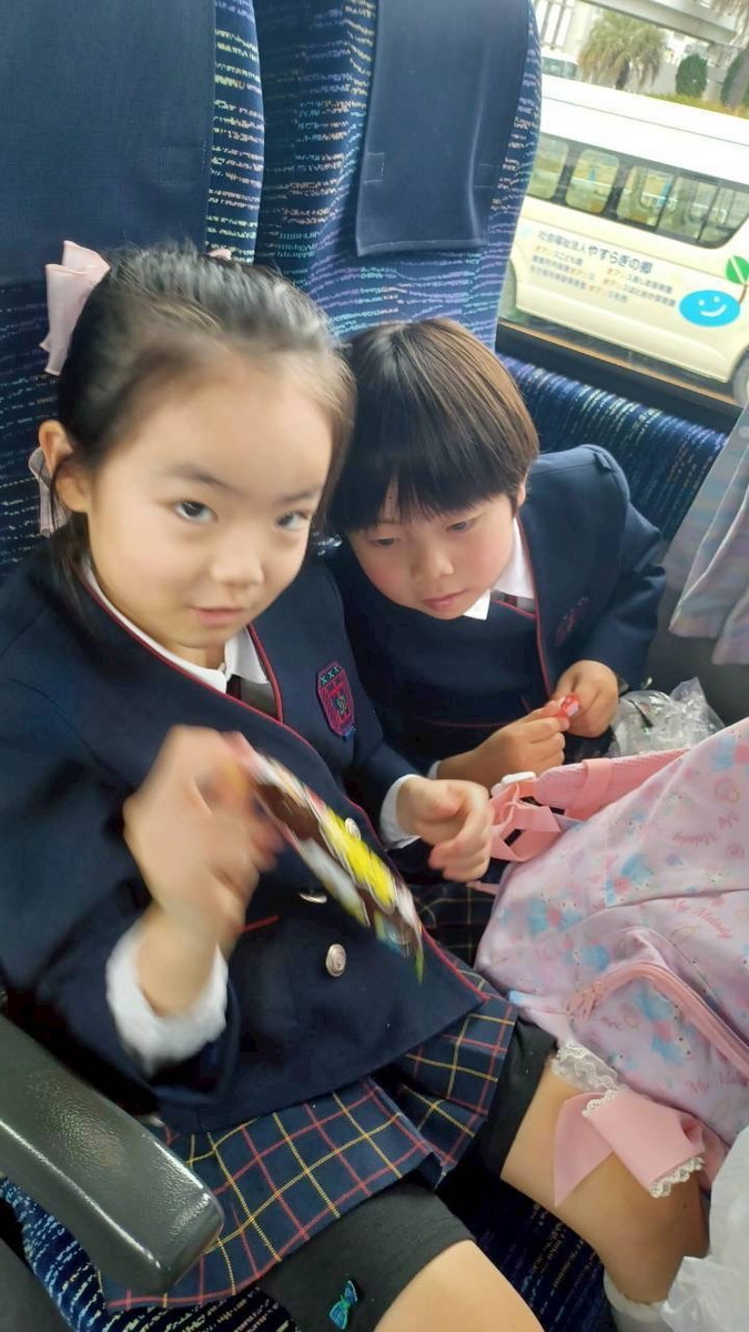 バスでのおやつタイムの様子です。