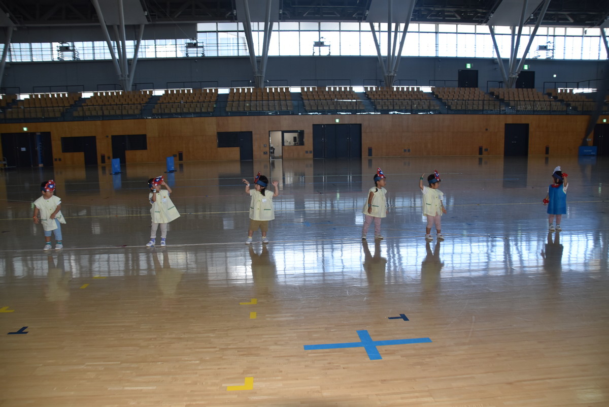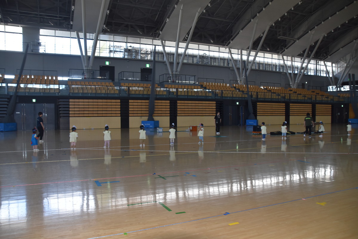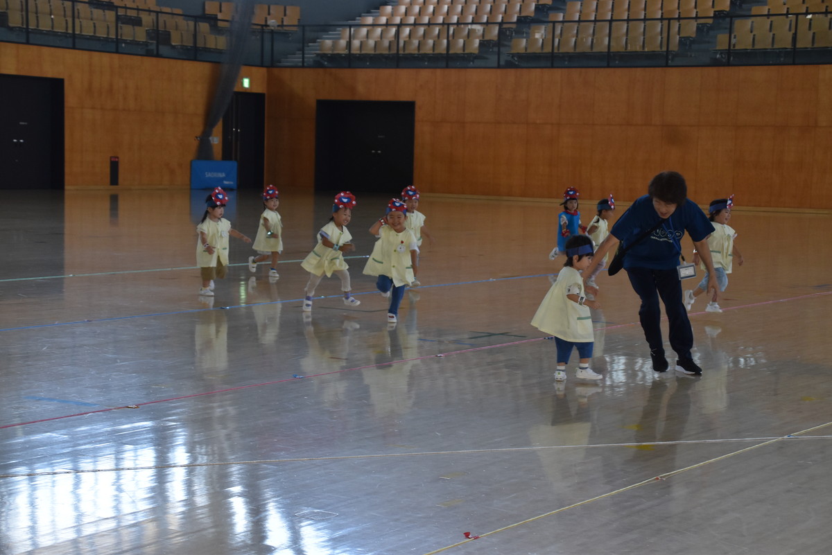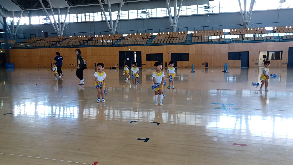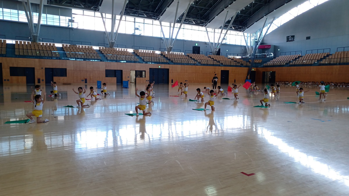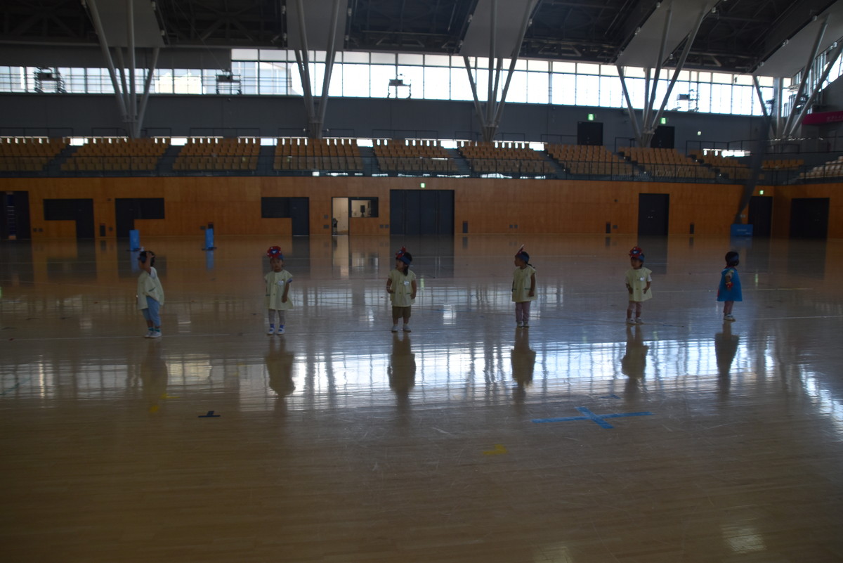 今日は、全園児そろっての運動会ごっこでした。日硝ハイウェイアリーナにて、本番の会場での運動会ごっこで、先生達の方がドキドキざわざわ(笑)していたようです。初回なのに、びっくりするほど上手でしたよ~!大きな場所で、もちろん戸惑うこともありましたが、こんな感じか~って感覚はつかめた様子ですよ。