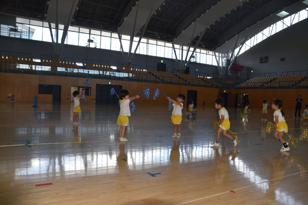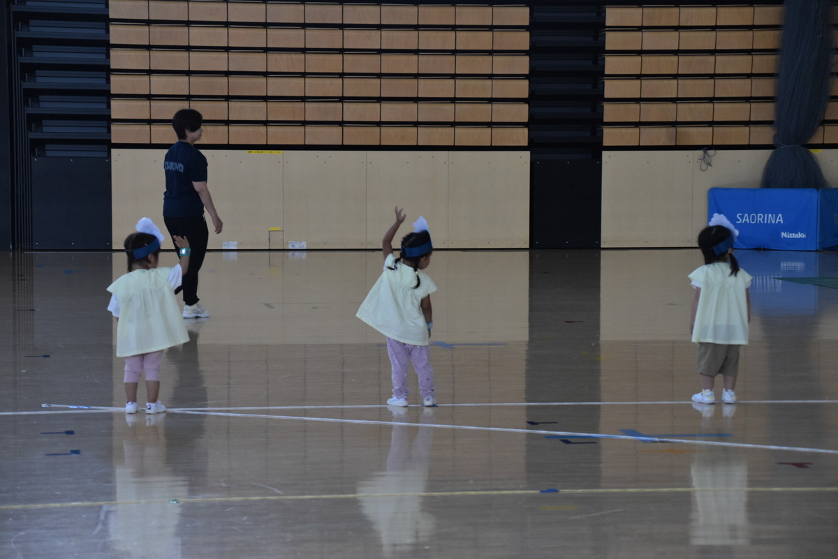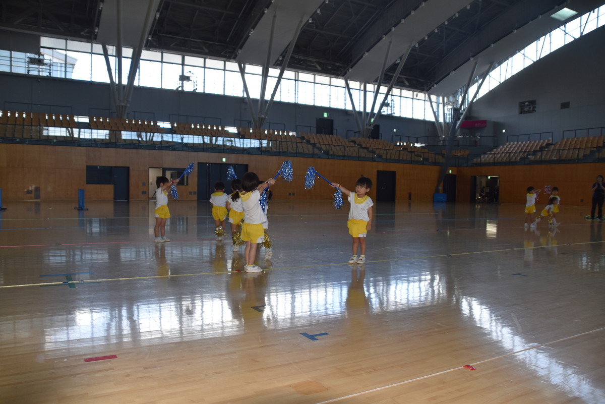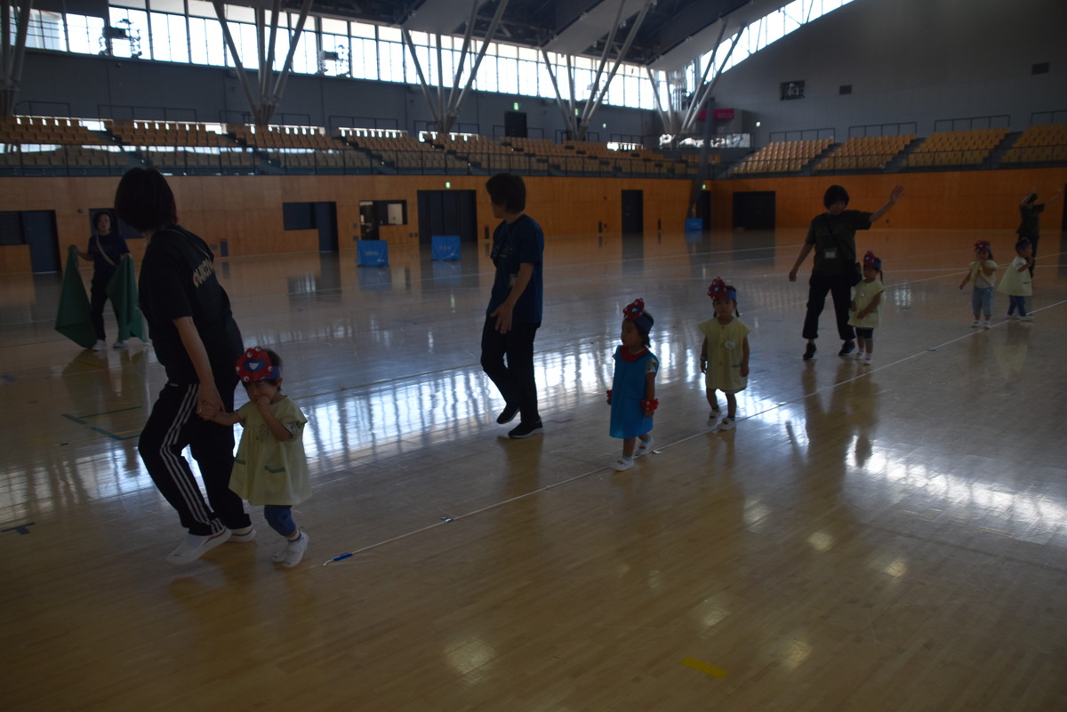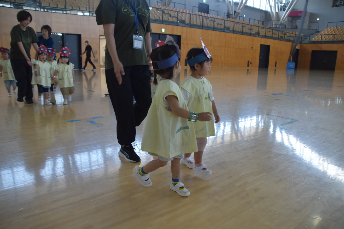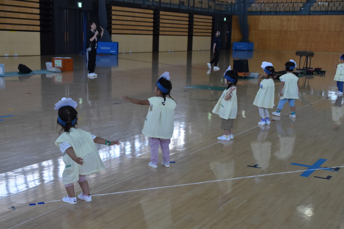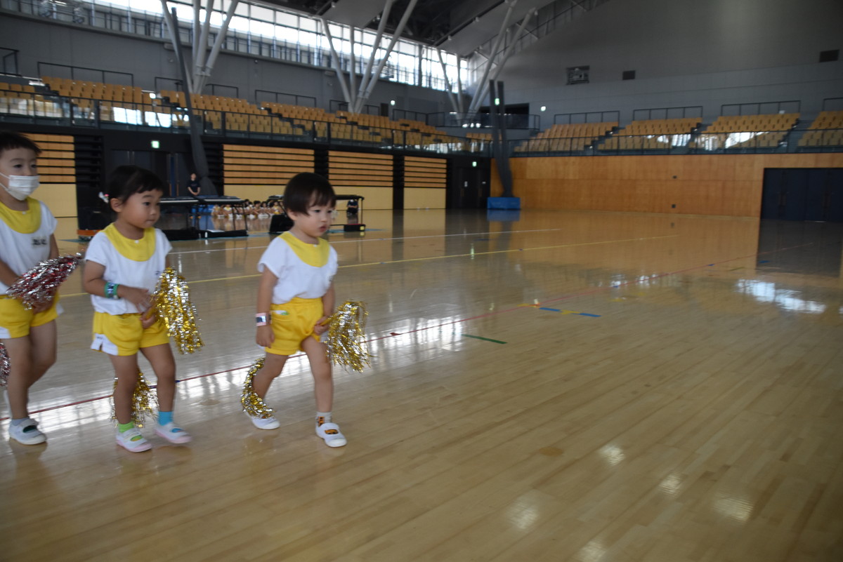 今日は、全園児そろっての運動会ごっこでした。日硝ハイウェイアリーナにて、本番の会場での運動会ごっこで、先生達の方がドキドキざわざわ(笑)していたようです。初回なのに、びっくりするほど上手でしたよ~!大きな場所で、もちろん戸惑うこともありましたが、こんな感じか~って感覚はつかめた様子ですよ。