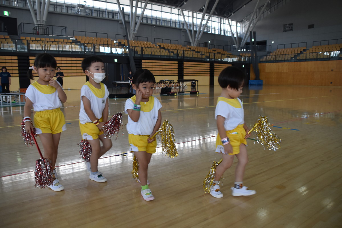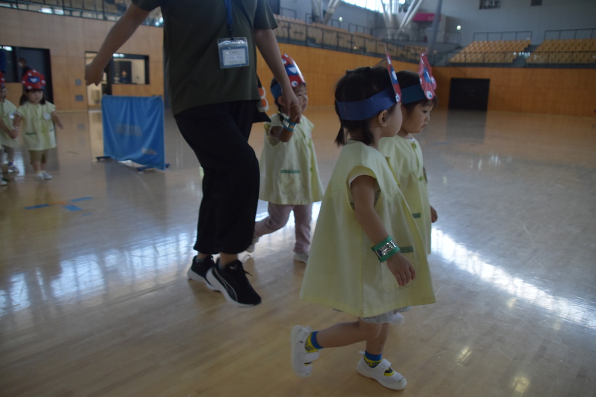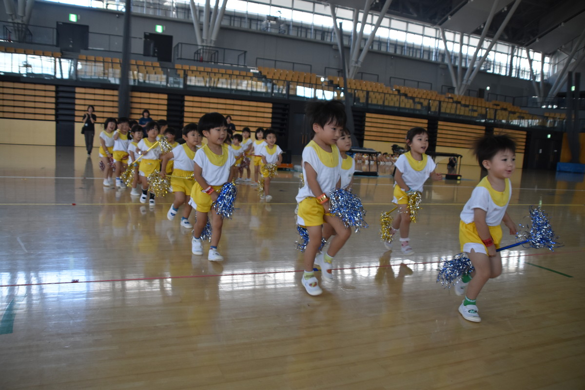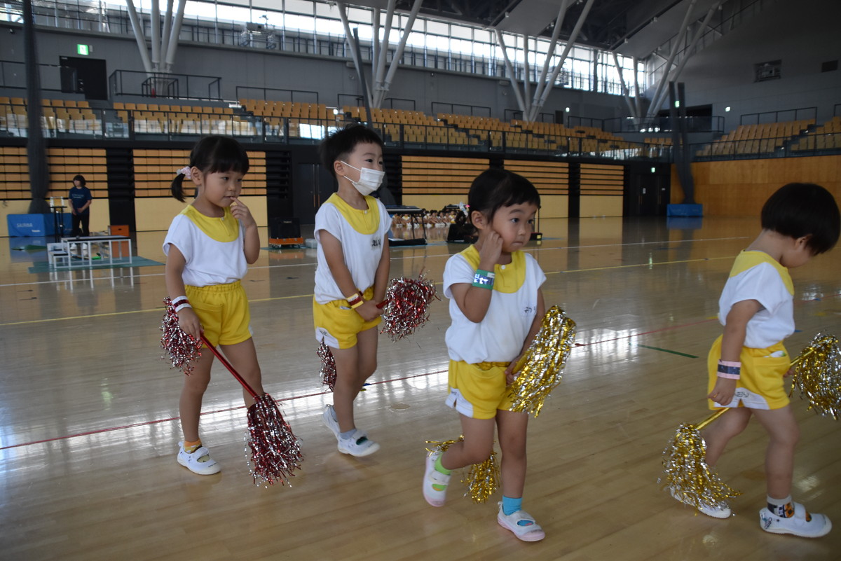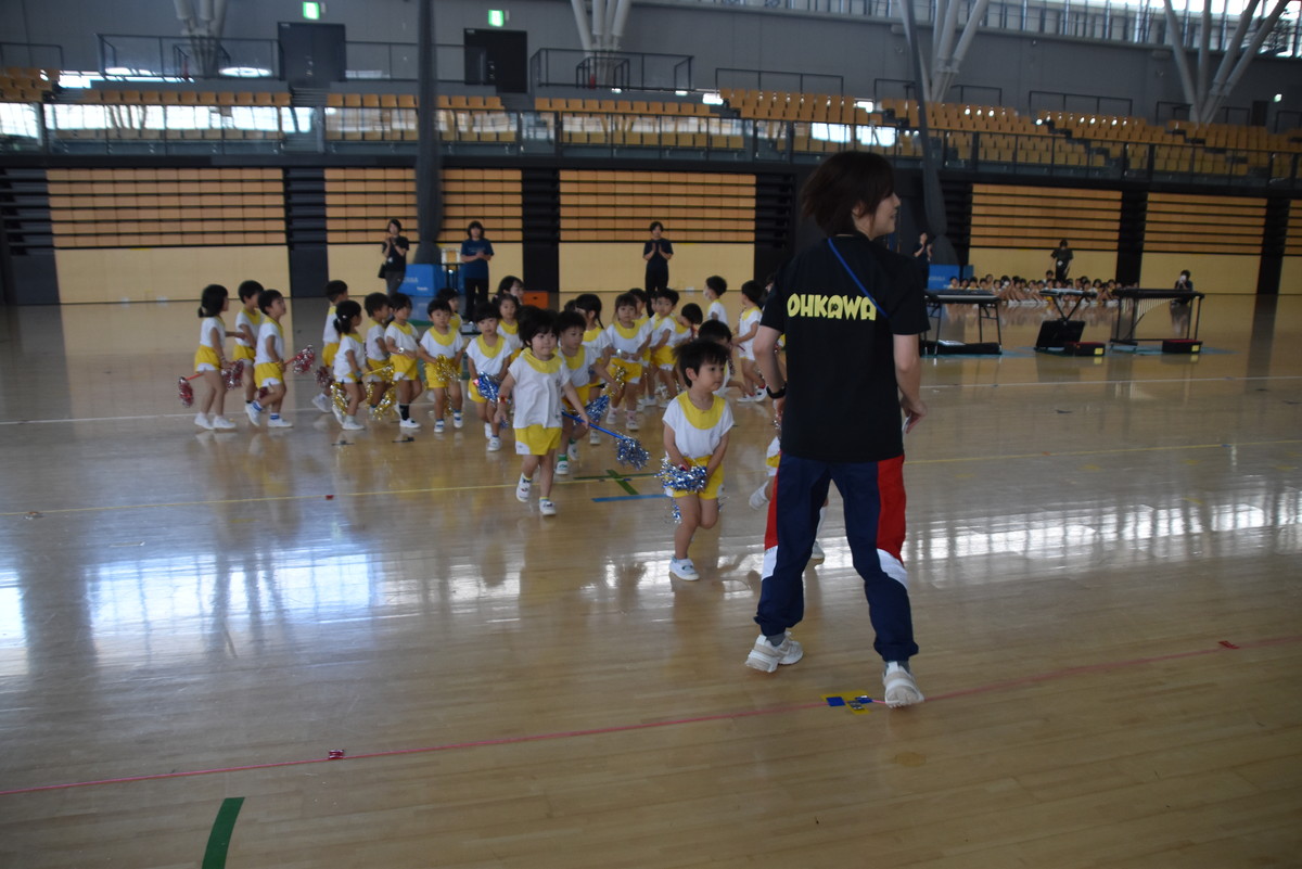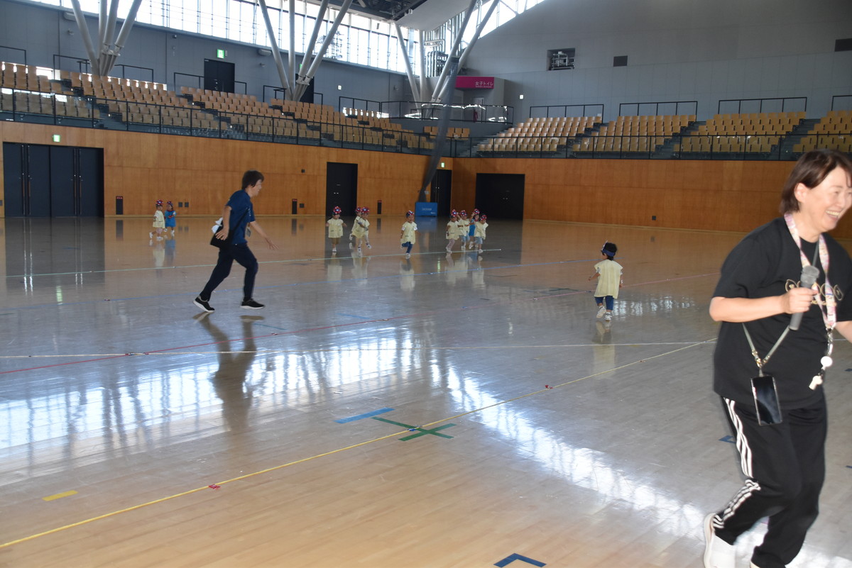 今日は、全園児そろっての運動会ごっこでした。日硝ハイウェイアリーナにて、本番の会場での運動会ごっこで、先生達の方がドキドキざわざわ(笑)していたようです。初回なのに、びっくりするほど上手でしたよ~!大きな場所で、もちろん戸惑うこともありましたが、こんな感じか~って感覚はつかめた様子ですよ。