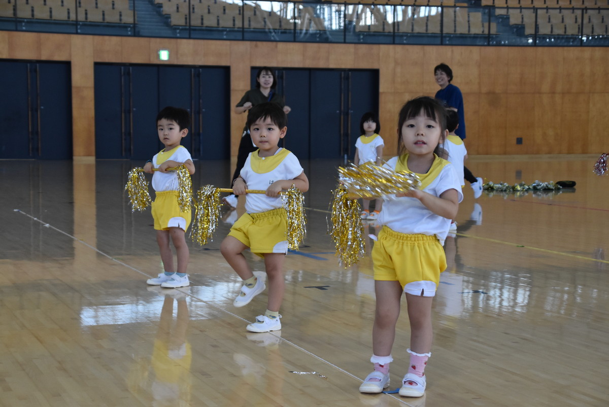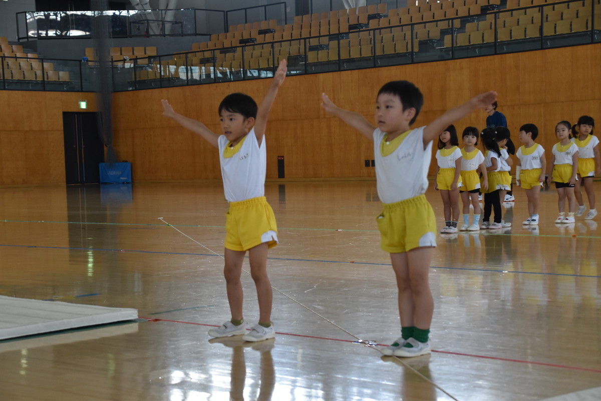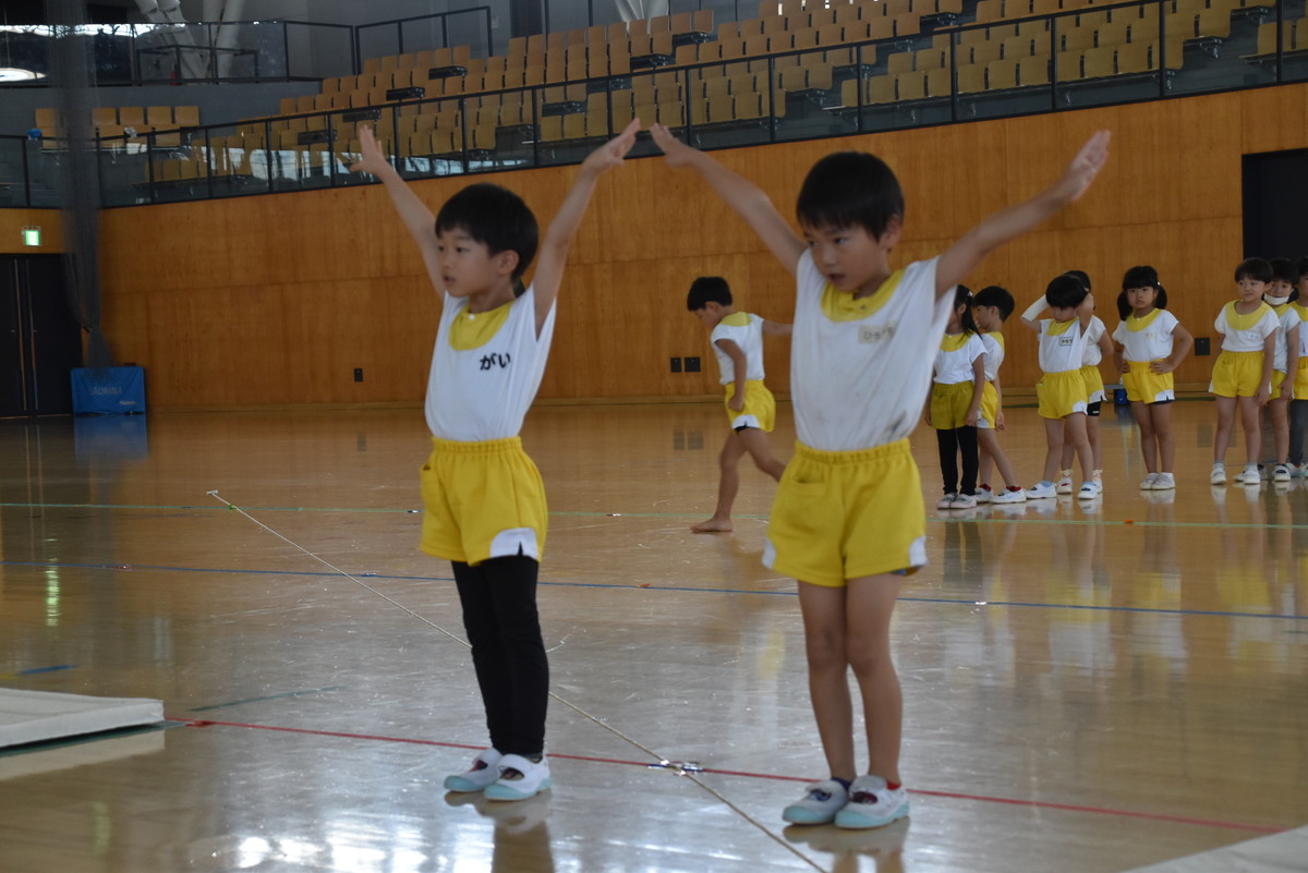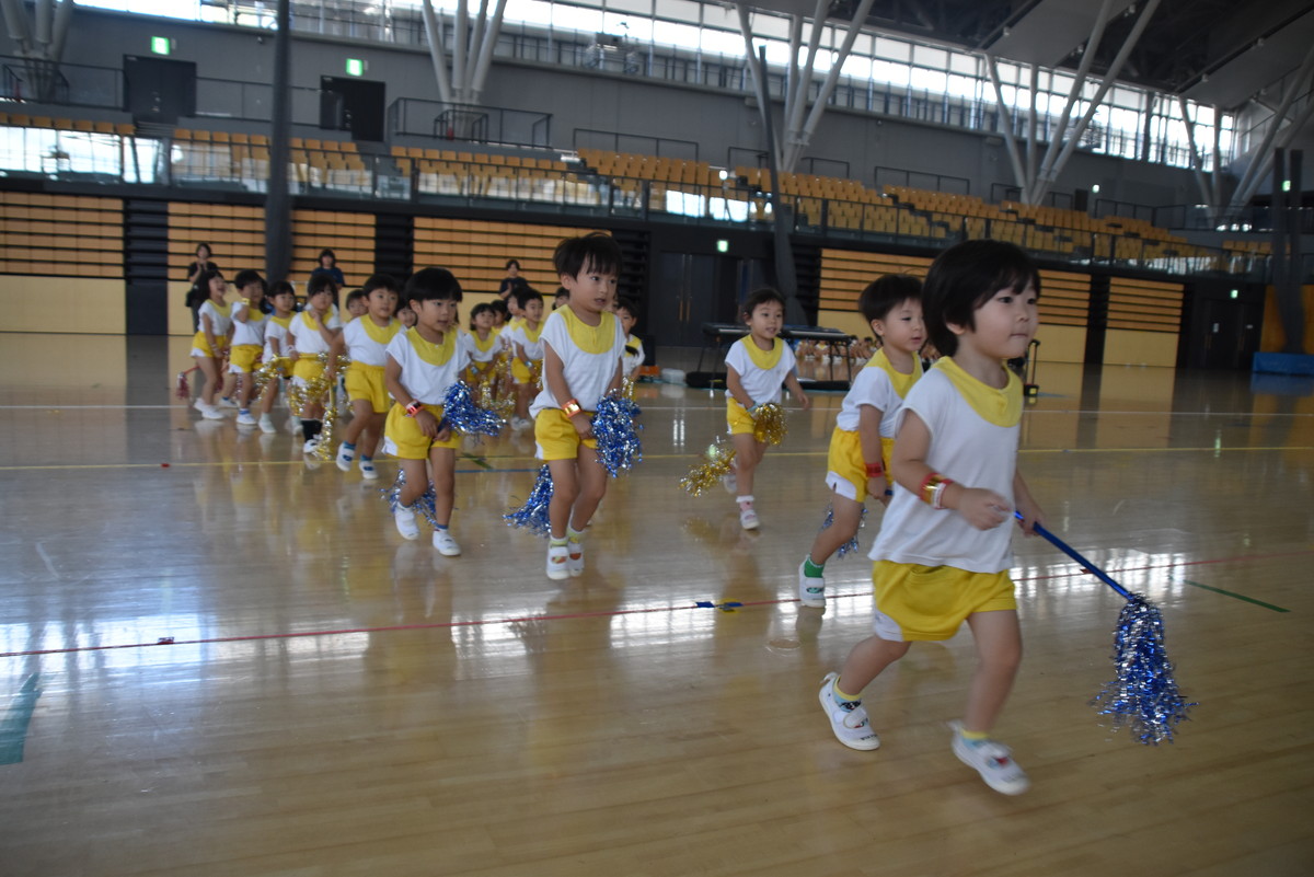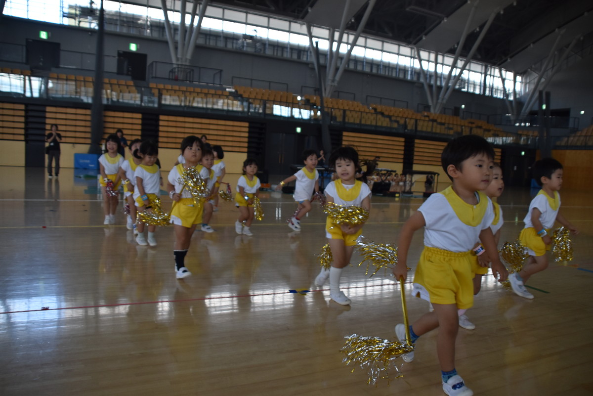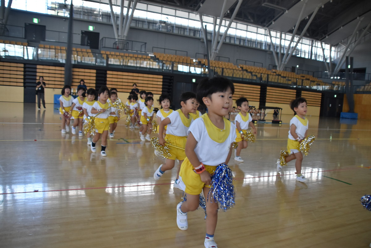 今日は、全園児そろっての運動会ごっこでした。日硝ハイウェイアリーナにて、本番の会場での運動会ごっこで、先生達の方がドキドキざわざわ(笑)していたようです。初回なのに、びっくりするほど上手でしたよ~!大きな場所で、もちろん戸惑うこともありましたが、こんな感じか~って感覚はつかめた様子ですよ。
