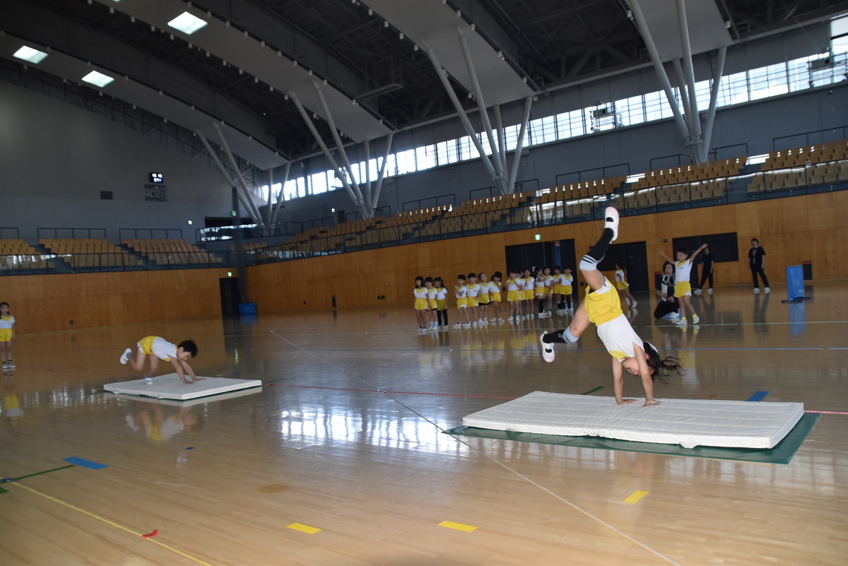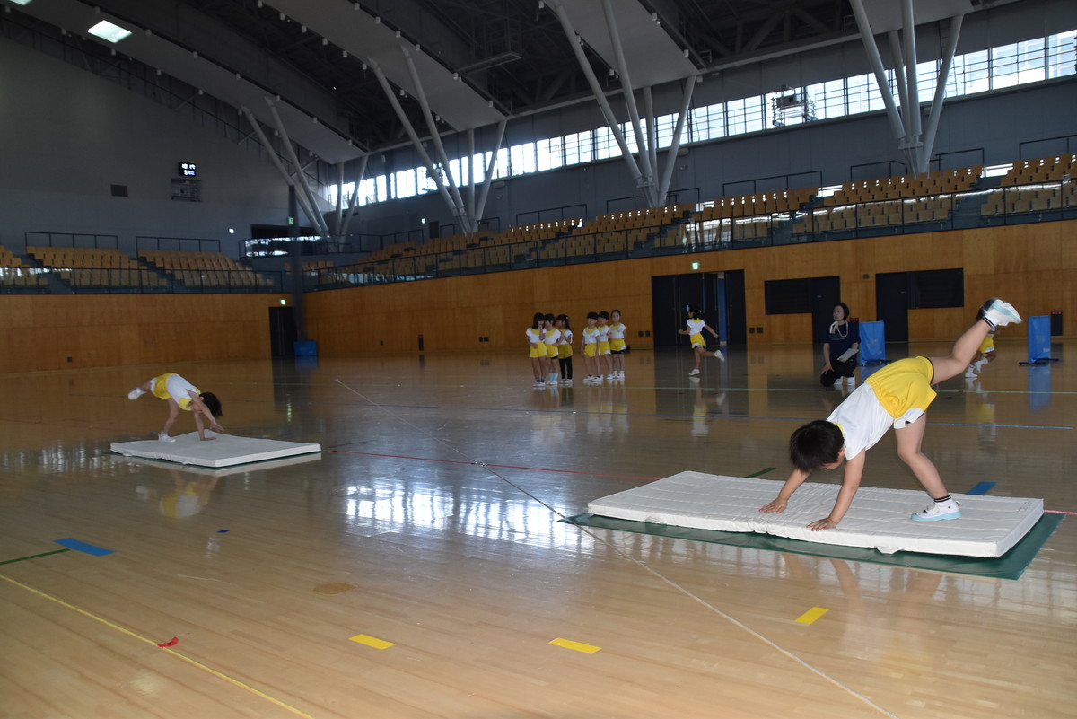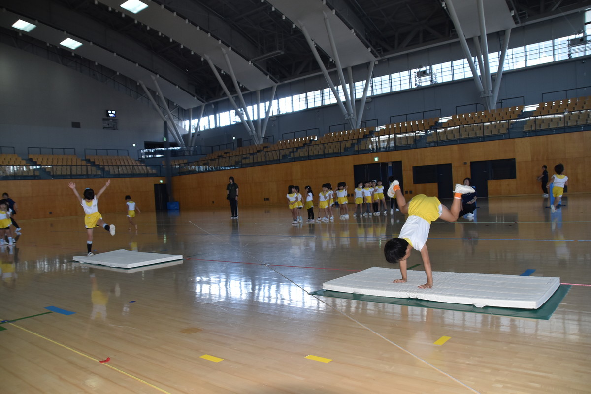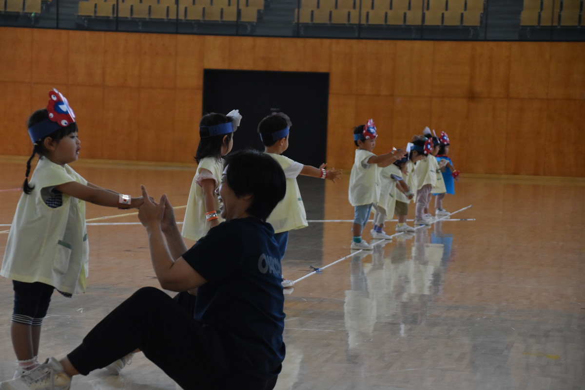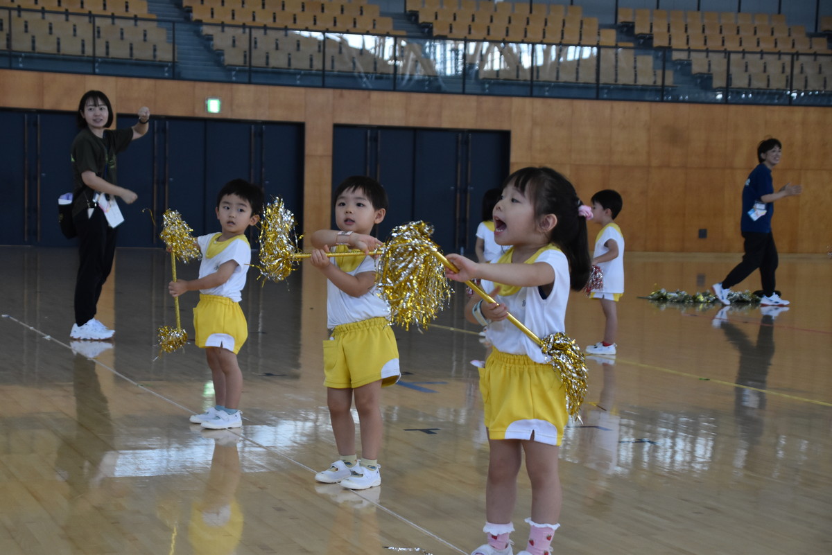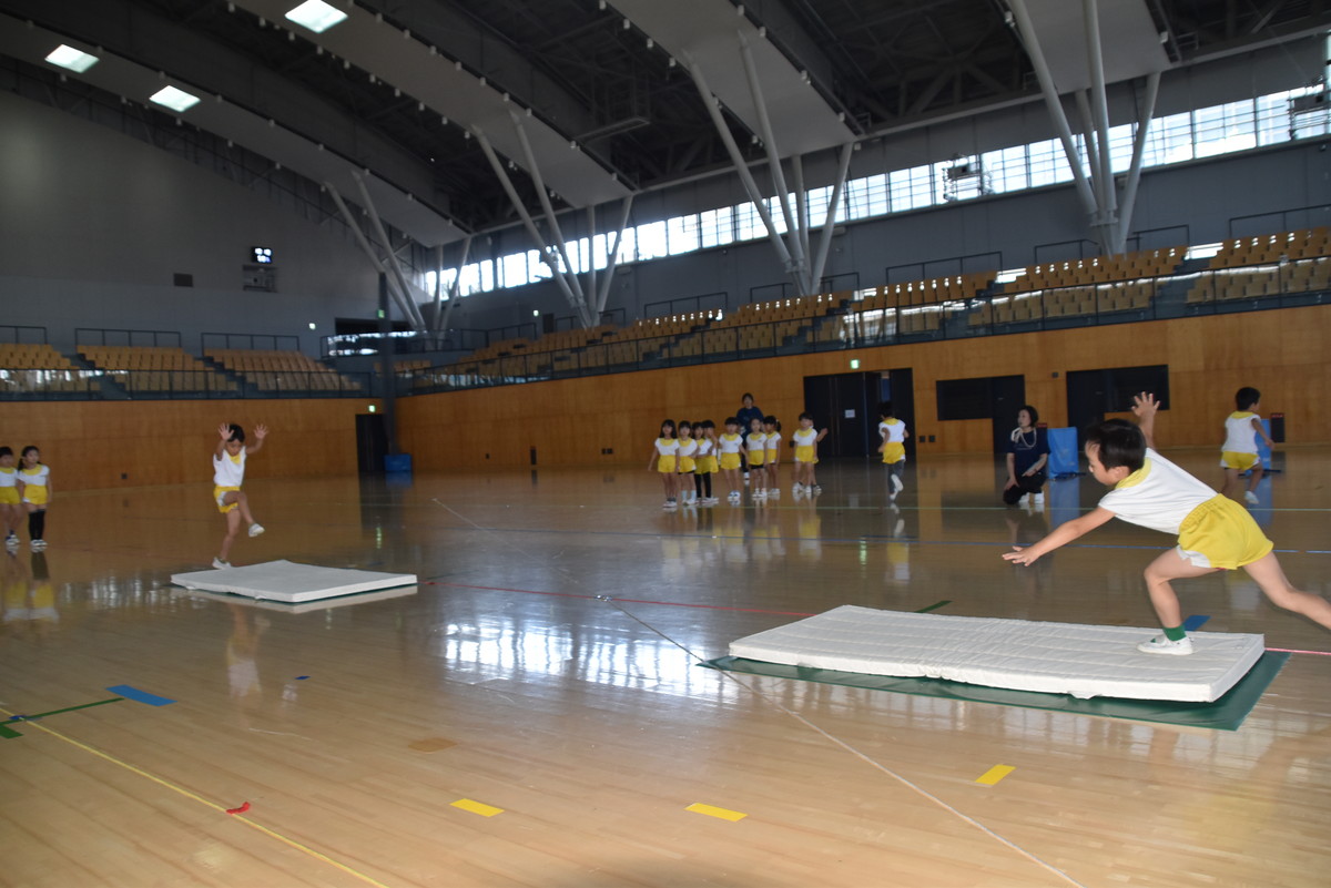 今日は、全園児そろっての運動会ごっこでした。日硝ハイウェイアリーナにて、本番の会場での運動会ごっこで、先生達の方がドキドキざわざわ(笑)していたようです。初回なのに、びっくりするほど上手でしたよ~!大きな場所で、もちろん戸惑うこともありましたが、こんな感じか~って感覚はつかめた様子ですよ。
