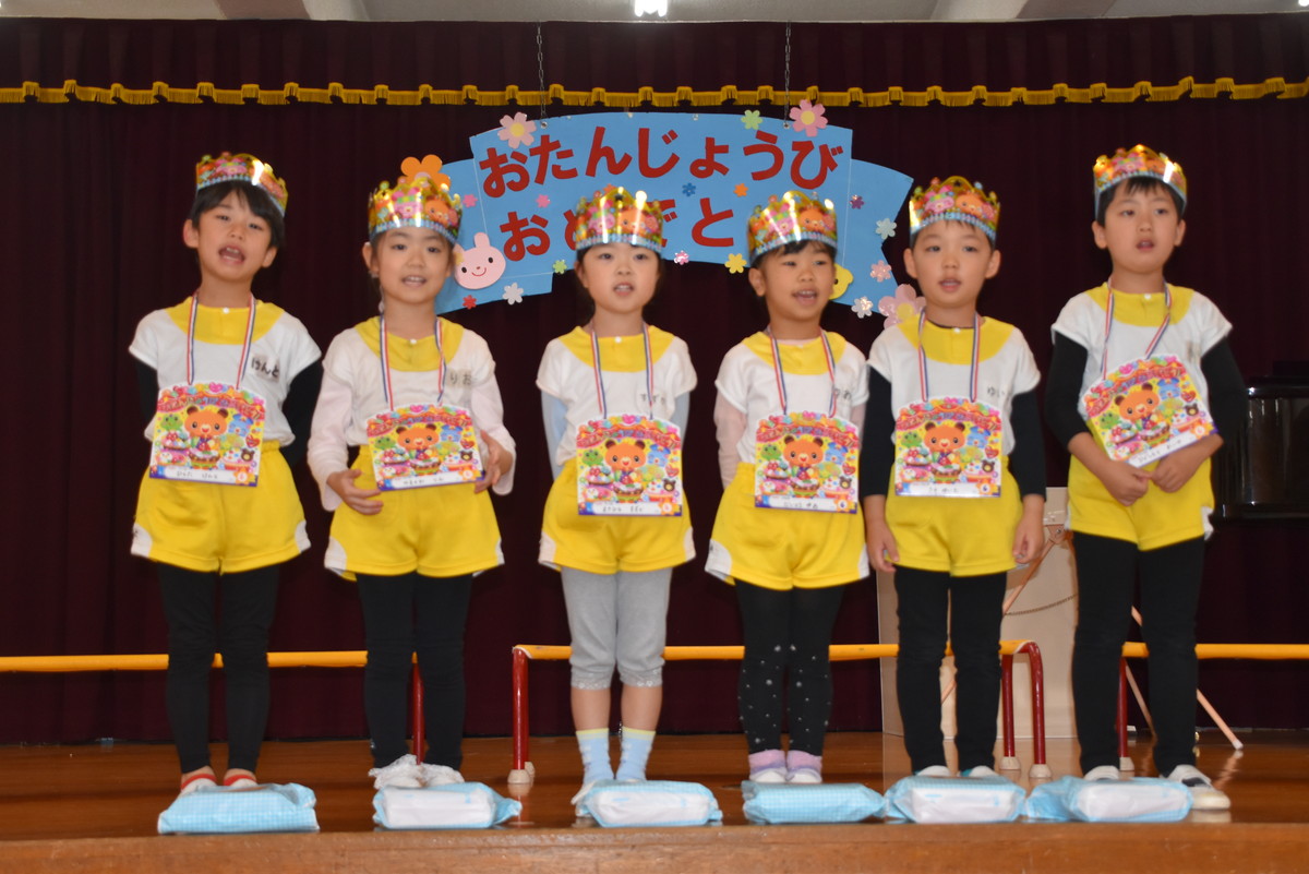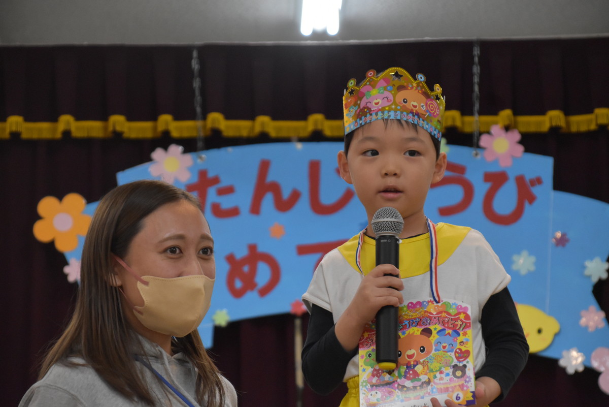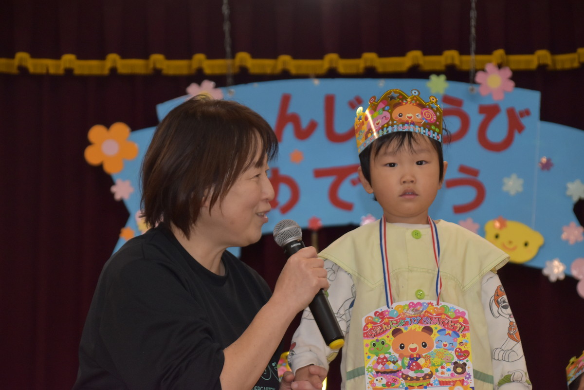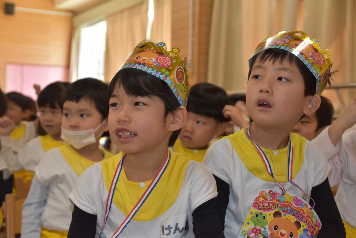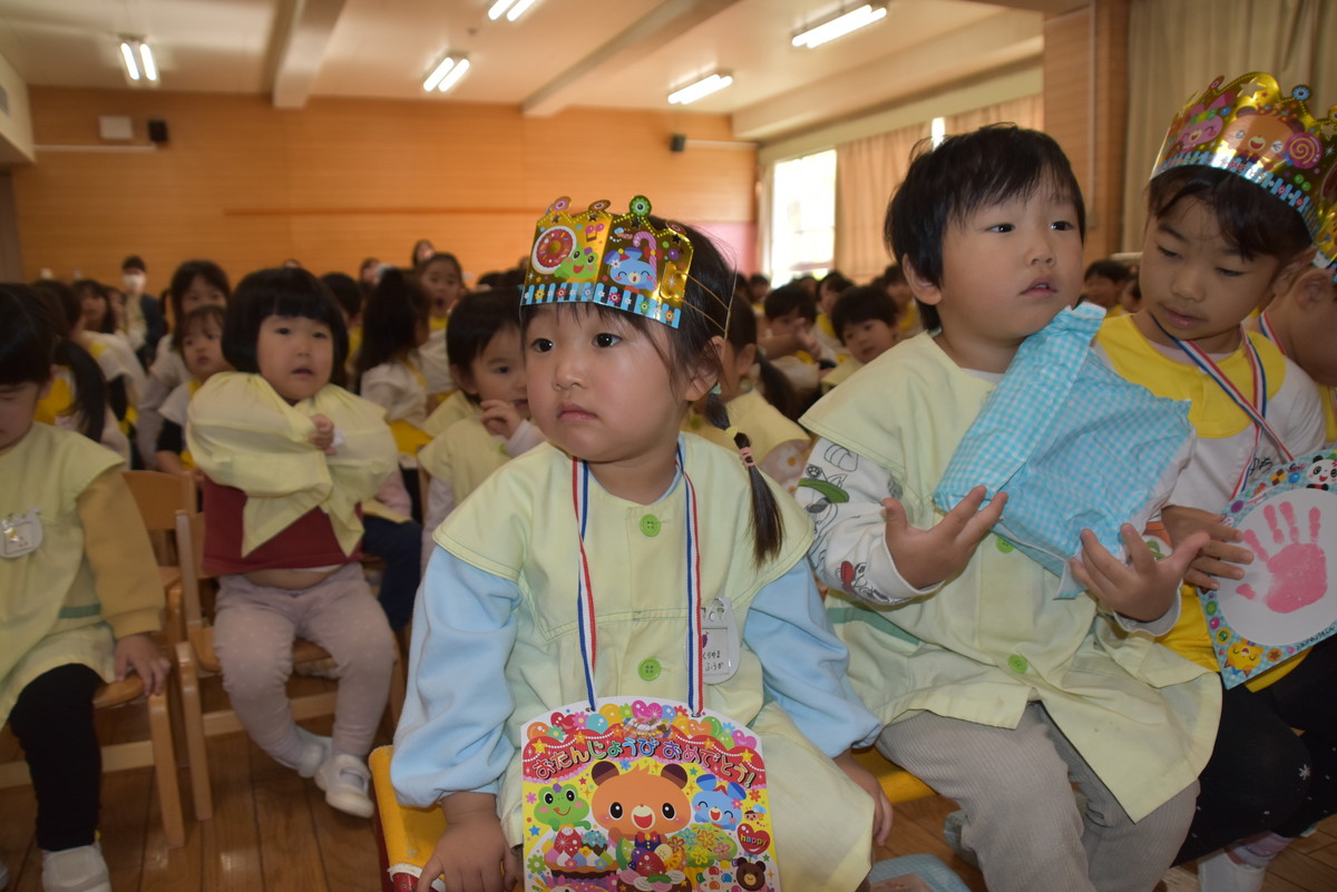 11月のお誕生会がありました。今月は、10月にお休みをしていたお友だちのお祝いもしていきました。今月もみんなで楽しい時間を過ごしましたよ。