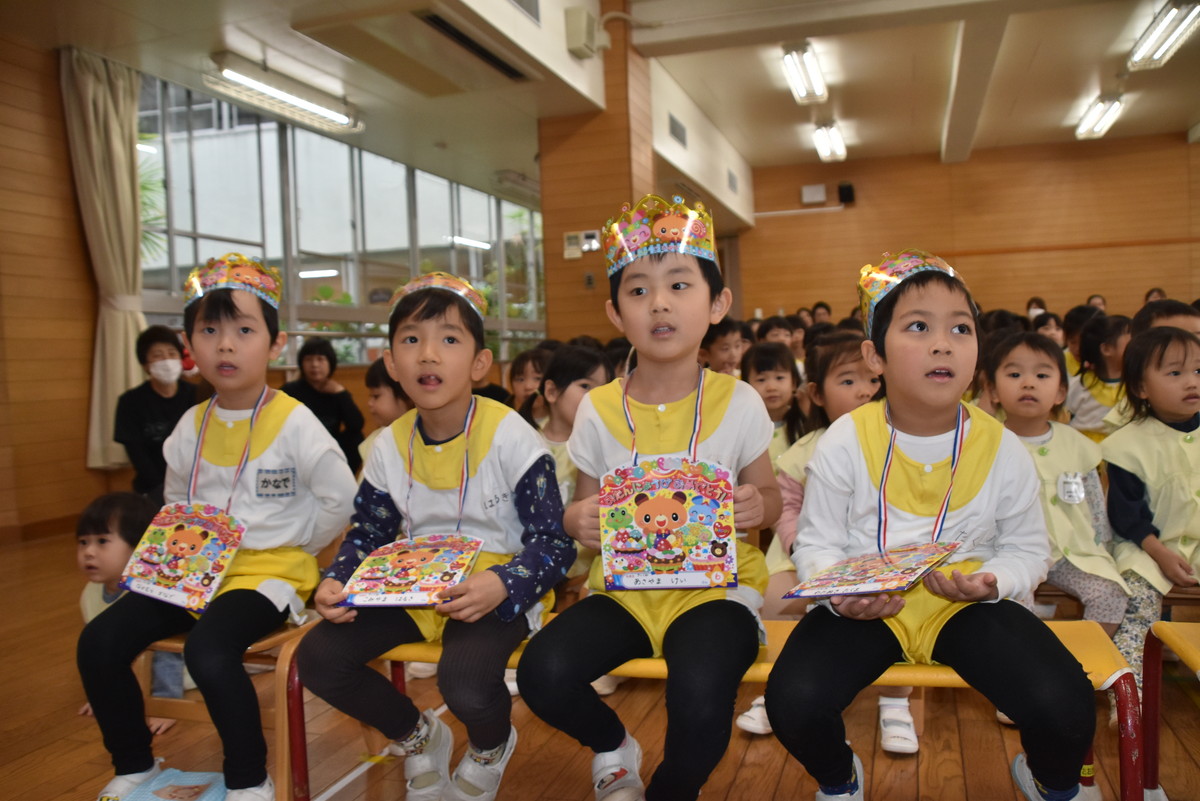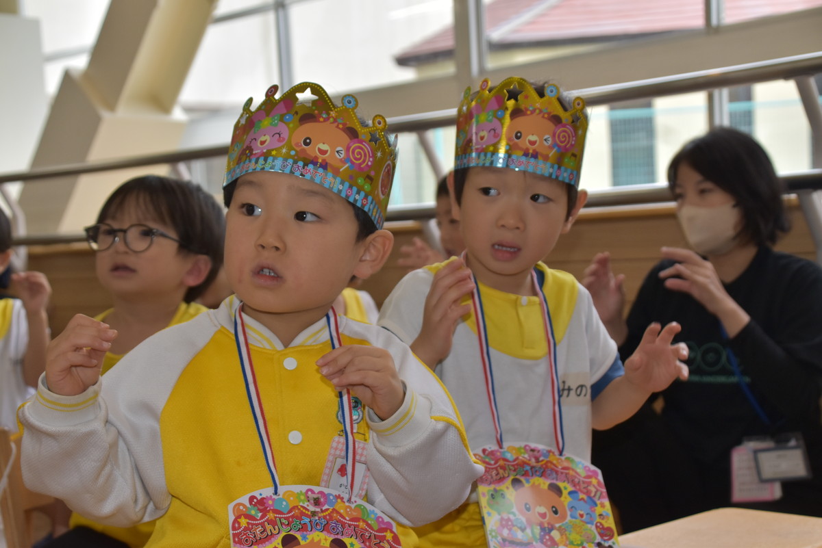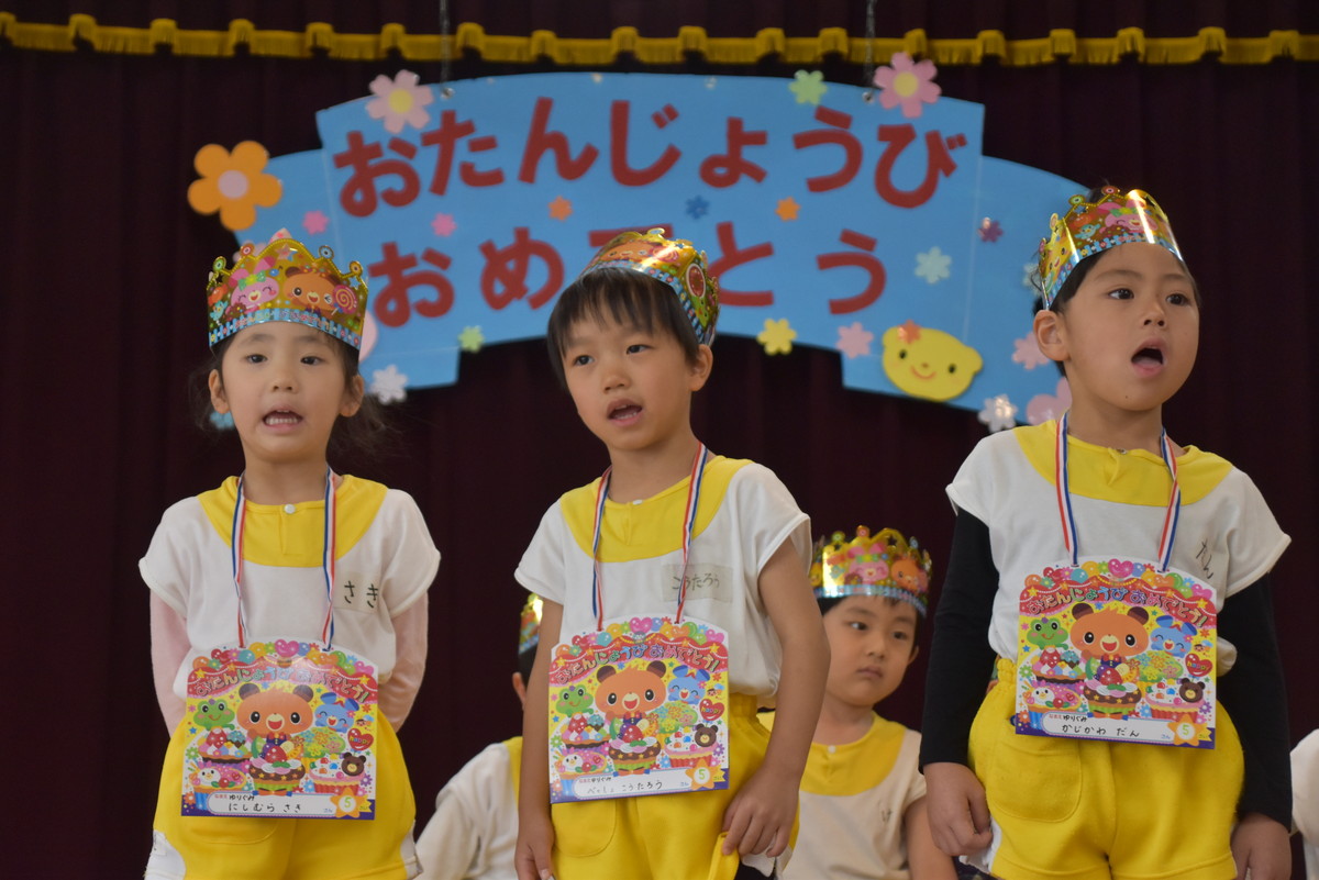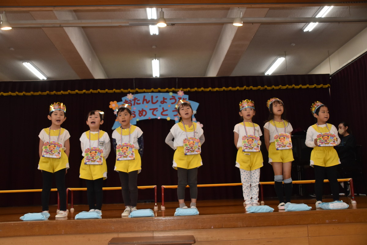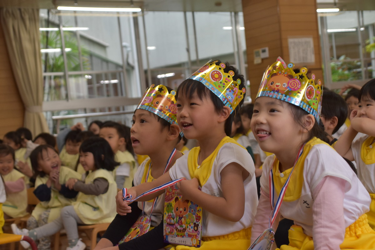 10月のお誕生会がありました。今月は、8月にお休みをしていたお友だちも一緒にお祝いをしていきました。みんなで楽しくて素敵な時間を過ごしましたよ。