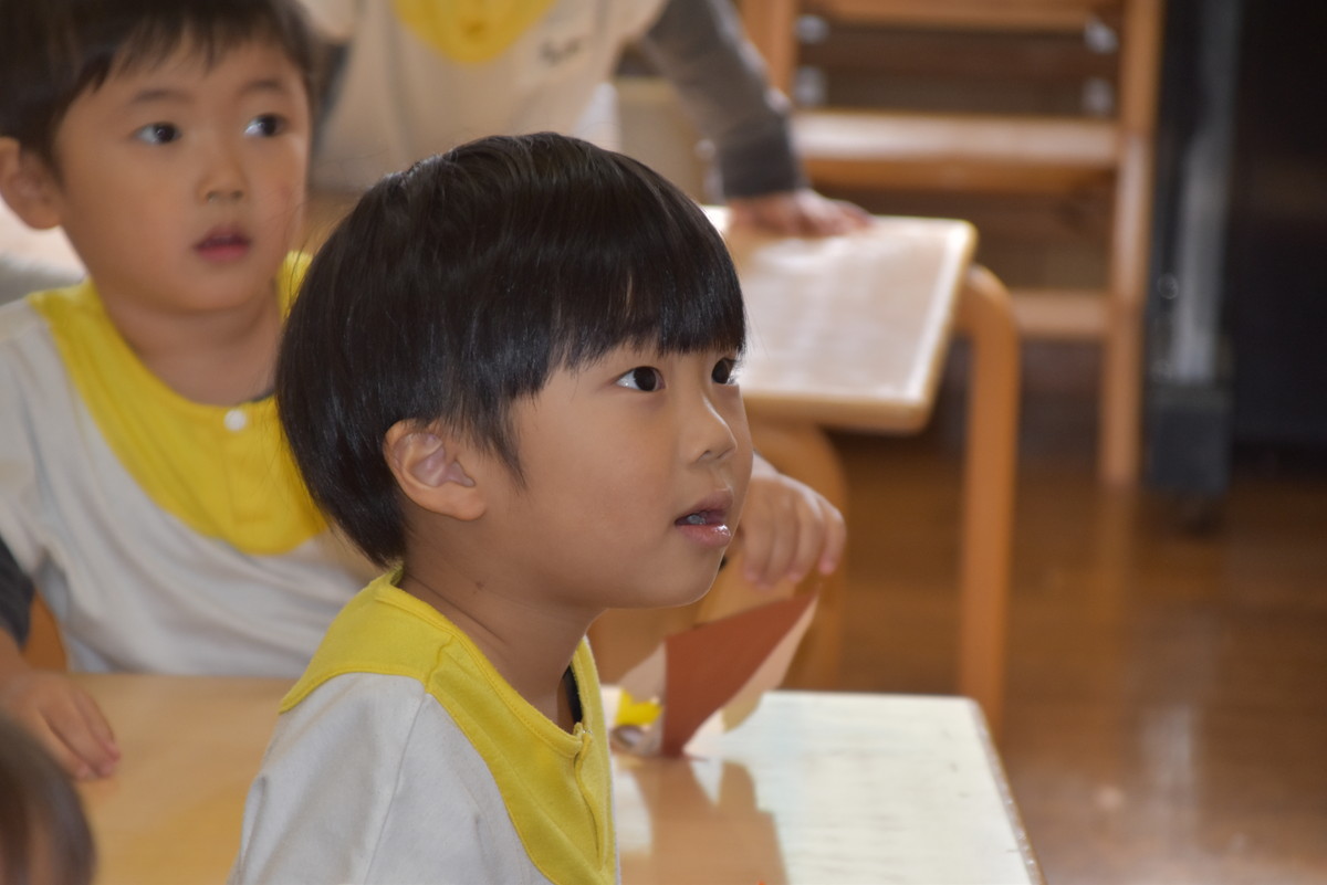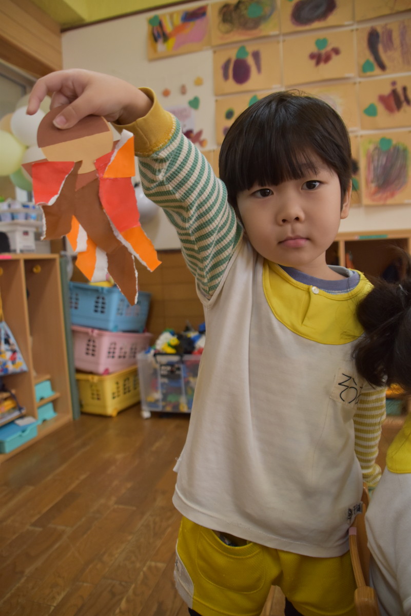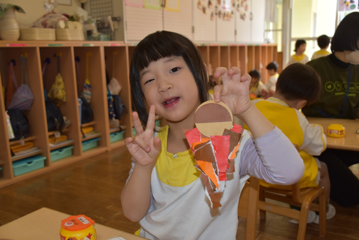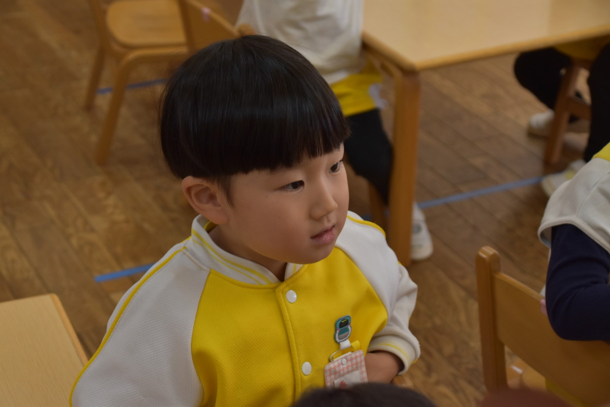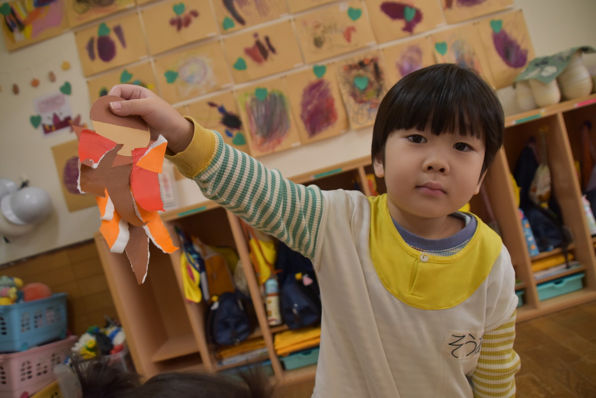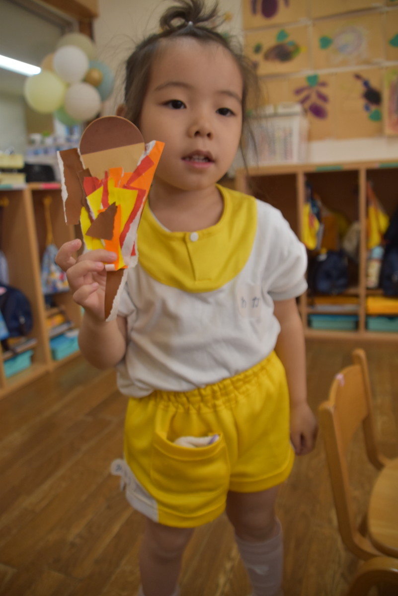 幼稚園での製作活動では、かわいいミノムシ作りをしていた年少さんでした。秋のあたたかな日差しにぶら下がったミノムシさんたち。