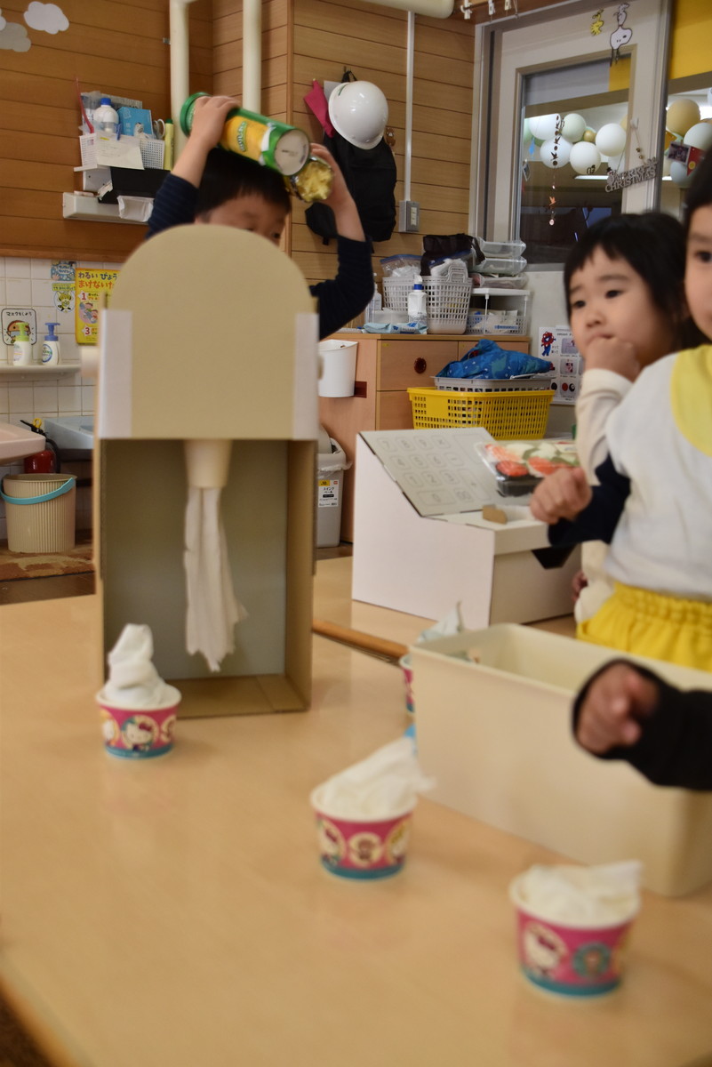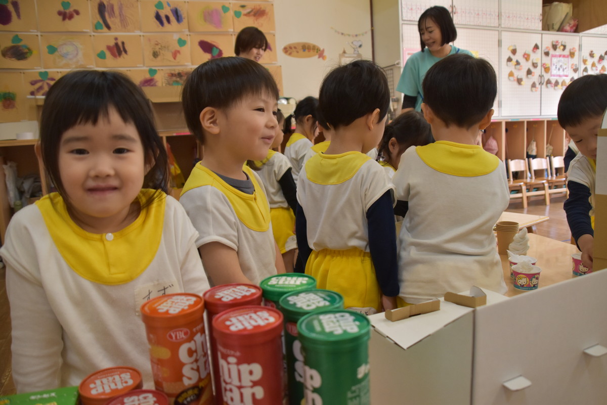 ちゅうりっぷぐみ・こすもすぐみ・ゆりぐみの保護者の皆様、お忙しい中、お店屋さんごっこの保育参観にご来園いただき、ありがとうございました。
