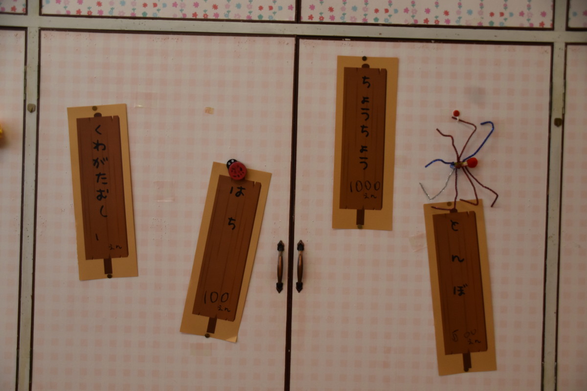 前半の写真は昨日のこすもすぐみのプレオープンの様子、中盤は各クラスの店内の様子、後半は本日のお店屋さんごっこの写真です。