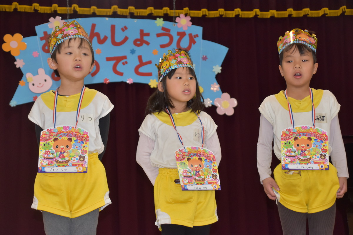 12月のお誕生会がありました。待ちに待ったお誕生日会。みんなからお祝いをしてもらい、大喜びの12月生まれさんでした。