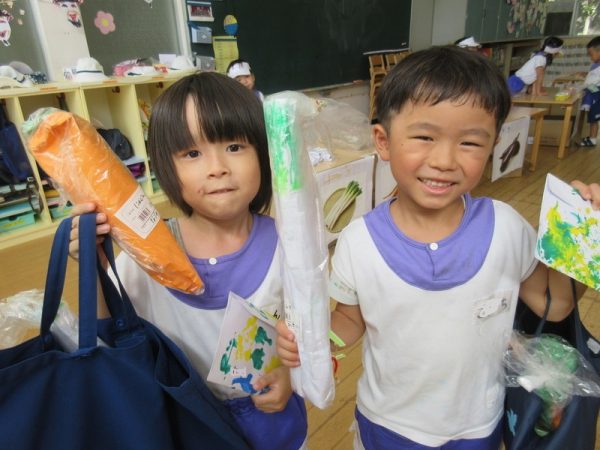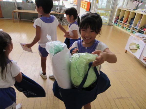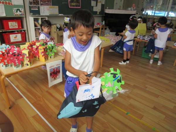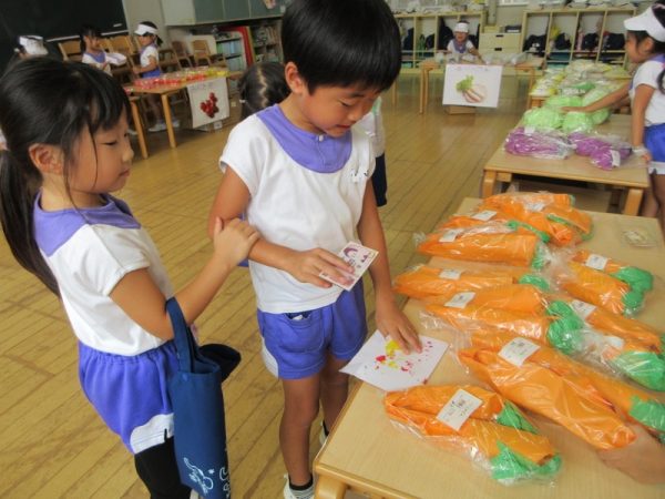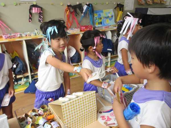 「いらっしゃいませ!」と元気な掛け声でお客さんを呼びこみ、お客さん役の子は「どこに行こうかな~」とワクワクしながらお買い物を楽しんでいました。