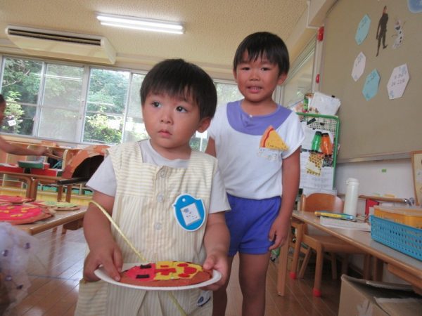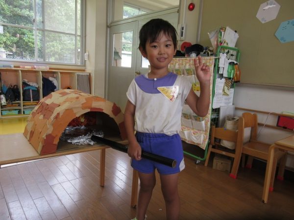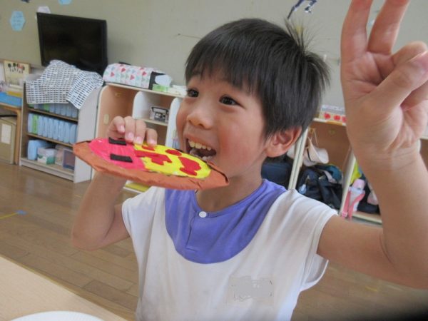 きりんぐみは「ピザ屋さん」みんなで作ったピザ窯でアツアツ焼きたてのピザとサラダを売っていましたよ!