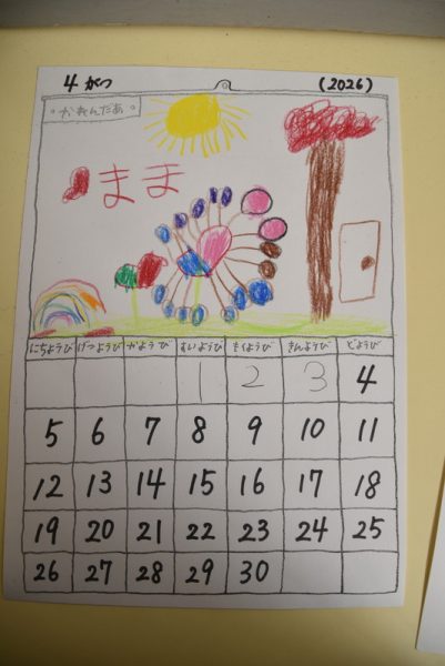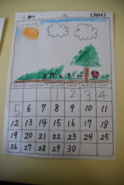 今年度もカレンダー作りを行っています。今回は今年度初の活動のため、好きな絵を描きました。