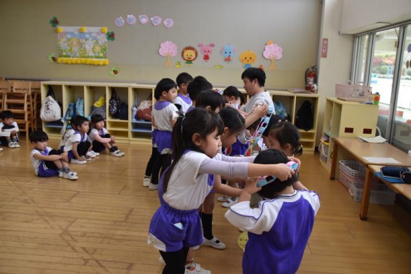 入級式から1週間が経ち、年少さんもどんぐり組での生活に慣れ、楽しんでいる様子が見られます。