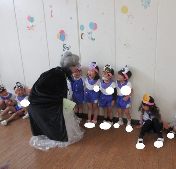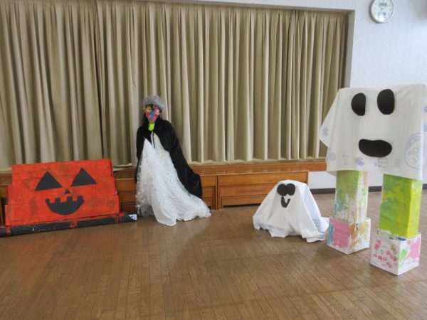 ドレスを着たおばけが、仲間をつれて津西幼稚園に来てくれました。