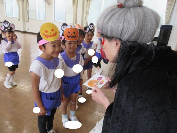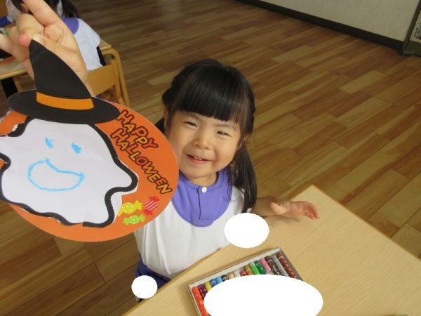 「ハロウィンって何?」から始まった年少さんでしたが、絵本を読んだり、話をしたりしていくうちに、ハロウィンをとても楽しみにしていましたよ。