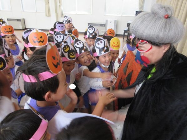 ドレスを着たおばけが、仲間をつれて津西幼稚園に来てくれました。