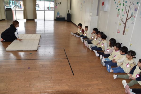 3学期になり、ちょうちょ組も講師のりか先生の体操指導が始まりました。