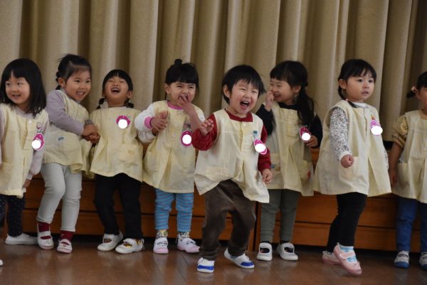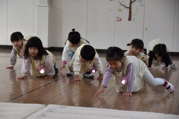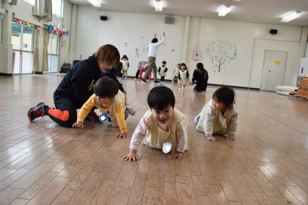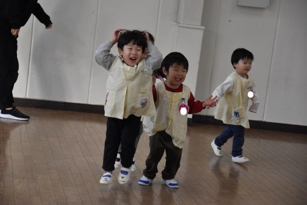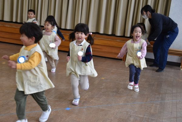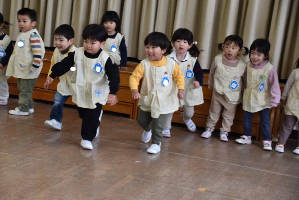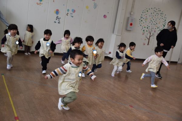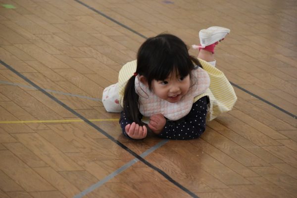 まずは、ウォーミングアップで「よーいどん!」でかけっこをしたり、うさぎジャンプをしたり、らいおん歩きをしたりとみんなニコニコの笑顔で参加していましたよ。