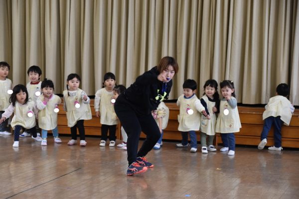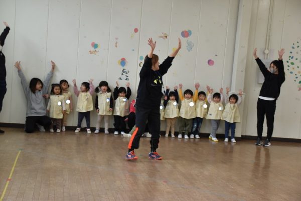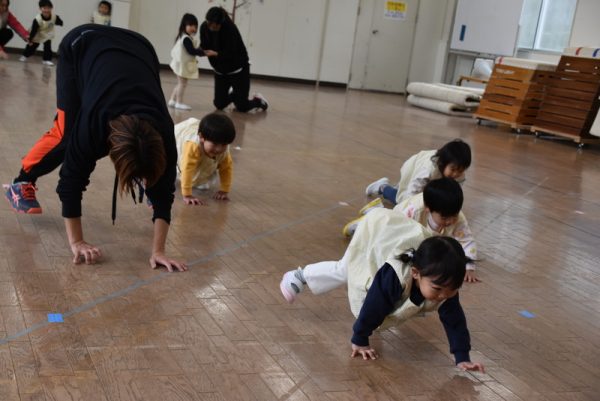 3学期になり、ちょうちょ組も講師のりか先生の体操指導が始まりました。