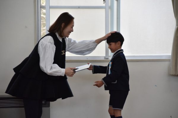 園長先生から受け取った証書は、お家の人に『ありがとう』の気持ちを伝えながら渡しましたよ!お家の人から「おめでとう」と言ってもらったり、頭をなでてもらったりして、嬉しそうな子どもたちの笑顔がとっても可愛かったです💗