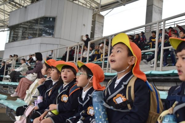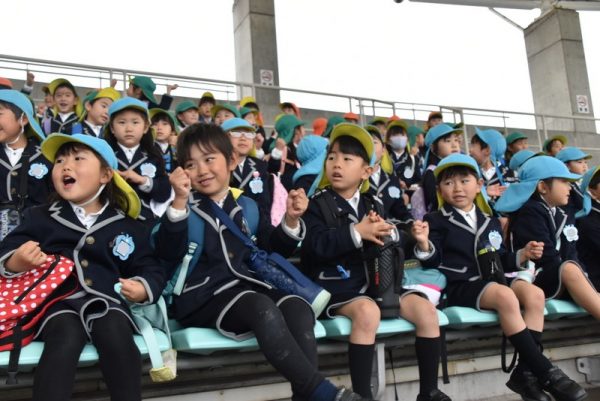 イルカショーの会場に到着!!クラスで集合写真を撮りましたよ📷✨