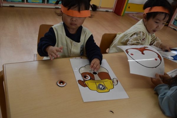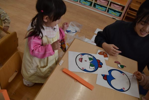 子どもたちに人気のキャラクターの福笑いが、たくさんありましたよ。