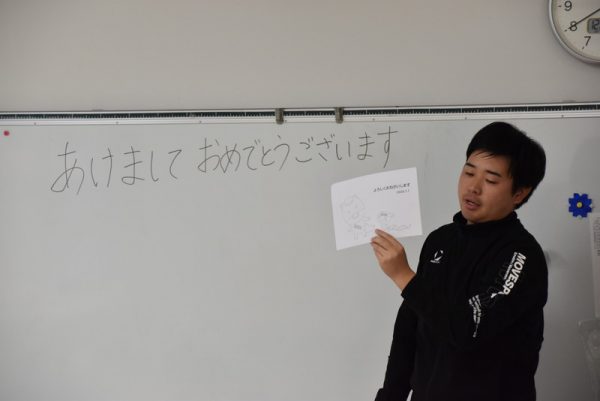 年長さんだけは、「あけましておめでとうございます」の文字を書くことにも挑戦しましたよ。