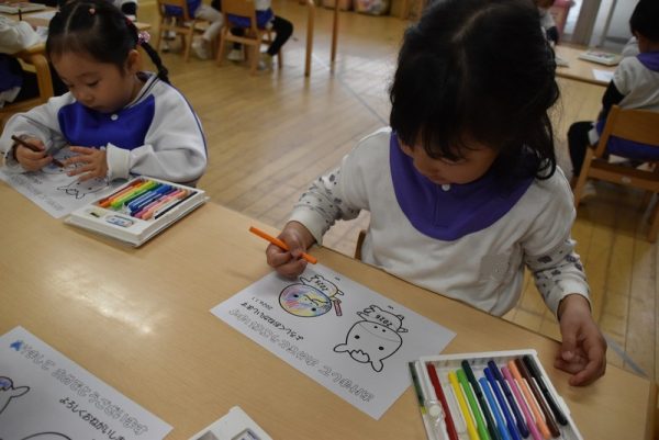 年中さんは、ちょっと難しい塗り絵に挑戦!