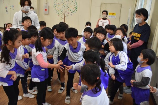 冬休み中は、毎日交代で担任の先生もどんぐりぐみにお手伝いに行くので、いろんな先生と触れ合えて、子どもたちも先生も、いつもと違うワクワク感を楽しんでいましたよ。