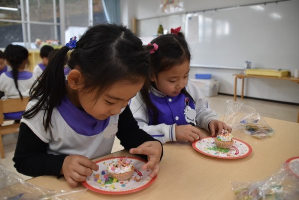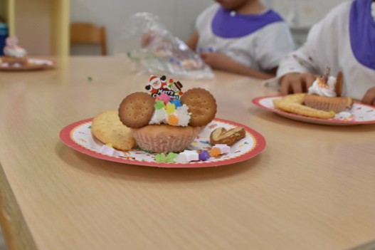最後のお楽しみは、クリスマスカップケーキ作り🎂