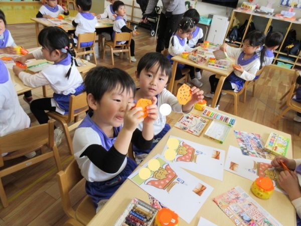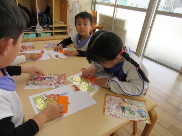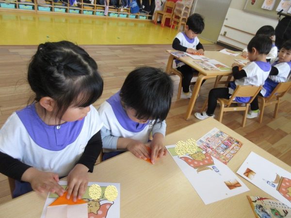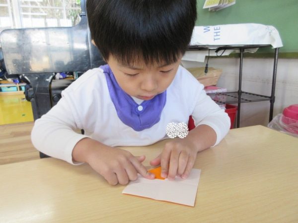 折り紙を配ってくれてます。自分たちで、いろいろなことができるようになったね。
