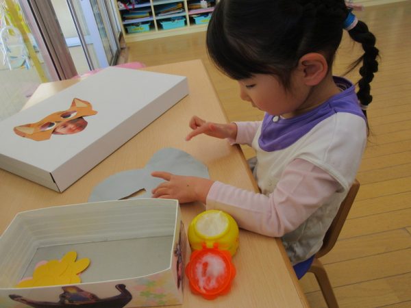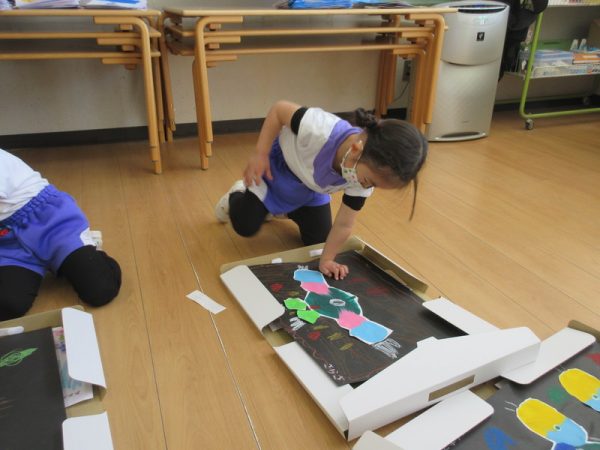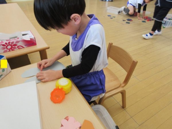 パスでの塗り込みが上手になったことや、折り紙も角を合わせて折れるようになったこと、ハサミが上手に使えるようになったことなど、一つ一つの作品を振り返りながら思い出を詰め込んでいきました。
