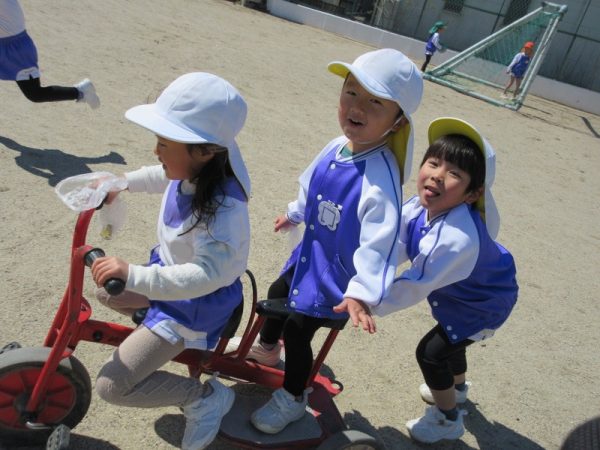 戸外では、以前一緒のクラスだった友だちと会ったり、同じクラスの子と一緒に遊んだり…と元気に伸びのびと遊ぶ様子がありました😊