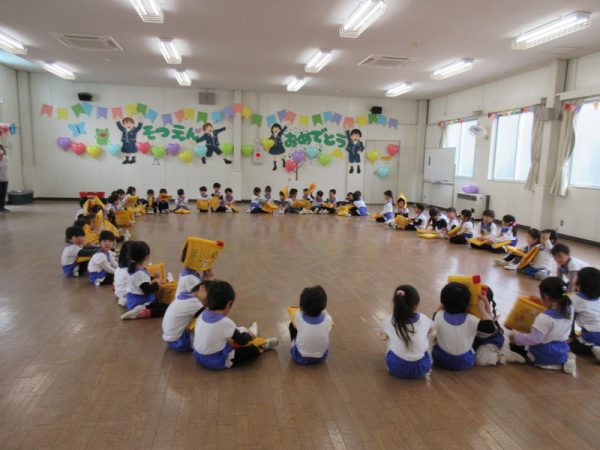 楽しい時間はあっという間に過ぎてしまいましたが、ぎゅっと手を握り合って心の絆も深まりましたね。入園した頃は、「お家に帰りたいよ~」「ママに会いたい」と、不安そうにしていた皆が、この一年で、こんなに素敵な笑顔を見せてくれるようになりました。『友だちっていいな!』『お家もいいけれど、幼稚園もすっごくいいなぁ!』と、子どもたちひとりひとりが感じてくれるようになったことと思います。私たち保育者にとって、『自慢の子どもたち』。これからも、大きく大きく羽ばたいてくれることでしょう。保護者の皆様には、いつも温かく見守っていただき、感謝の気持ちでいっぱいです。1年間、至らぬ点も多かったと思いますが、保護者の皆様の笑顔と、子どもたちの笑顔にどれだけ励ましていただけたことでしょう。思い返すと数えられないぐらいです。本当にありがとうございました。