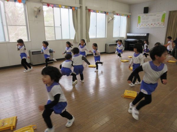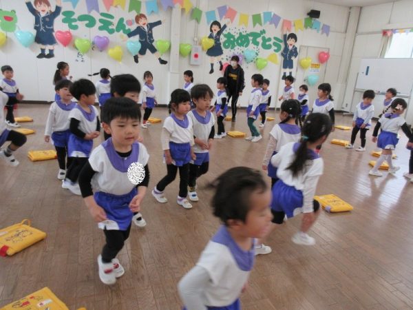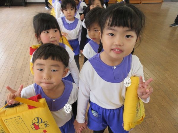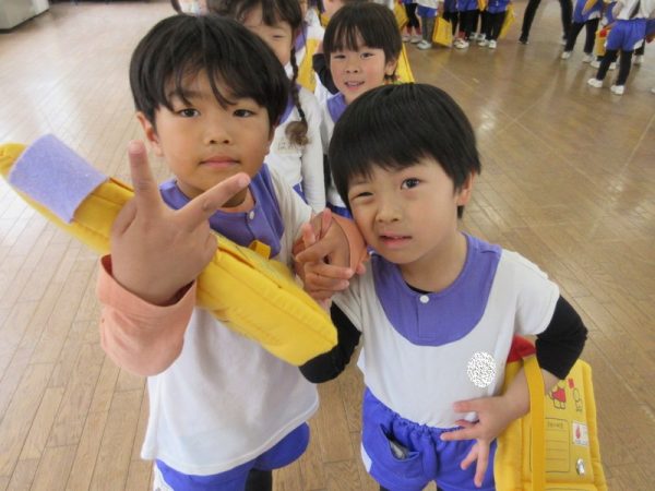 3月になってからは、「あと〇個寝たら、年中さんだね。」「あと〇日で、おしまいだね。」そんな期待と淋しさが入り混じる言葉が聞かれることが増えた年少さんでした。この一年、毎日一緒に生活していく中でクラスの友だちとのつながりが深まりましたね。クラスの友だちと、心も通じ合えるようになりましたね。戸外や帰りの時間には、ひよこぐみとぱんだぐみの友だちが一緒に遊ぶ姿も見られ、クラスの垣根を越えて楽しむ姿も見られるようになりました。そんな仲良し年少さん皆で、この一年の楽しかった思い出つくりも楽しみましたよ。