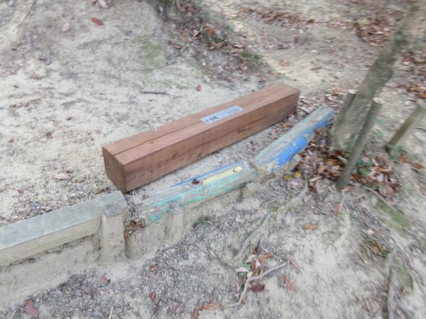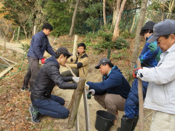 そして今回もう1つのプロジェクトは、子どもたちが危険な場所に行かないよう目印となるロープを留めている杭の中で、木が腐りかけてきているものがあったので、その取り換え作業もしていただきました。