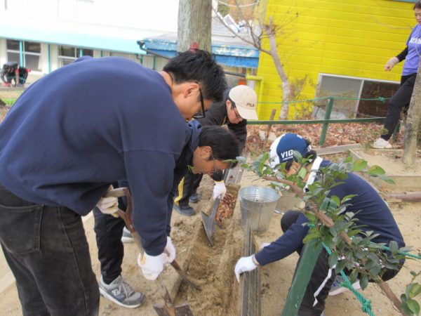 あらかじめ、ここにこの木を追加して…っていう感じで、環境部の男の先生たちが準備をしてくださってあったので、とても分かりやすく、作業も順調に進みました。