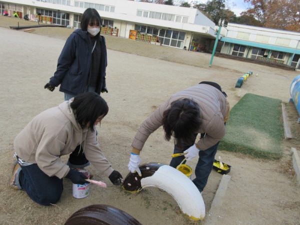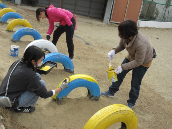 前半の作業が順調だったので、遊具のペンキ塗りまでしていただけました。