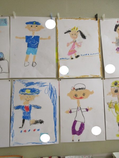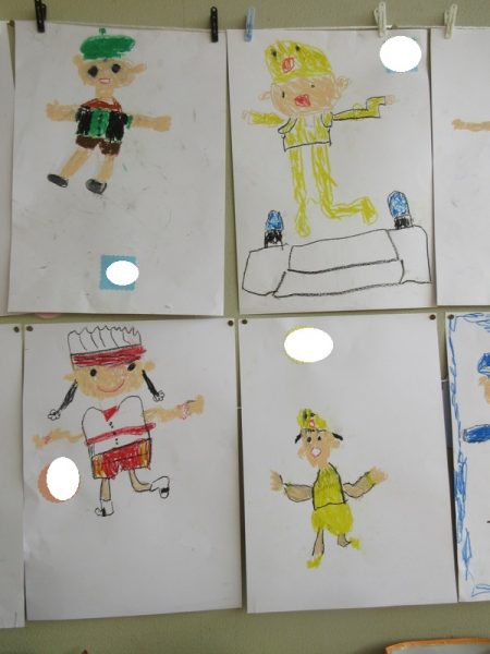 金のがちょうの頭飾りやパン屋さんの帽子など…よく思い出して描けていますね!