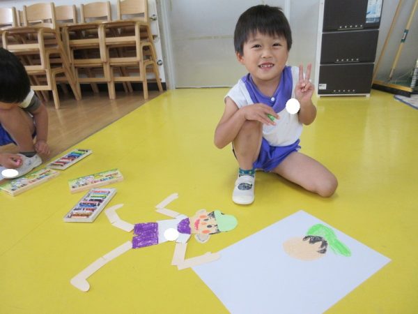 「おそ松です!」のポーズを描くのかな?上手に作品を動かしていますね。